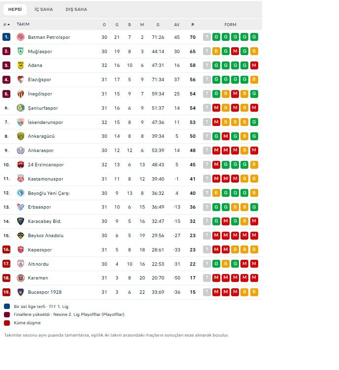 Bu mağlubiyetle birlikte 45 puanda kalan 24 Erzincanspor, haftayı 10. sırada tamamladı. Ligin bitimine kısa süre kala alınan bu ağır yenilgi, kırmızı-siyahlı ekibin Play-Off umutlarının da matematiksel olarak sona ermesine neden oldu.