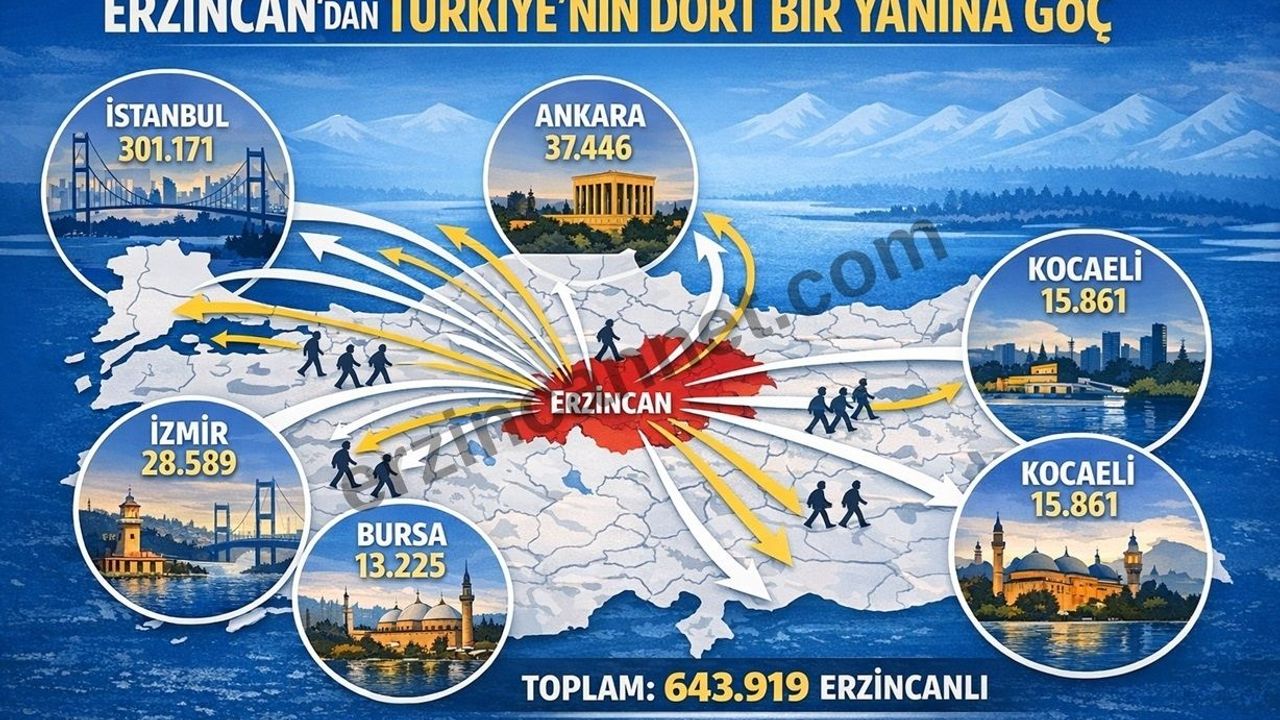 Resmi rakam 643 bin 919 olarak açıklansa da, uzmanlar ve hemşeri dernekleri ülke genelinde 1,5 milyonun üzerinde Erzincanlı yaşadığını tahmin ediyor.