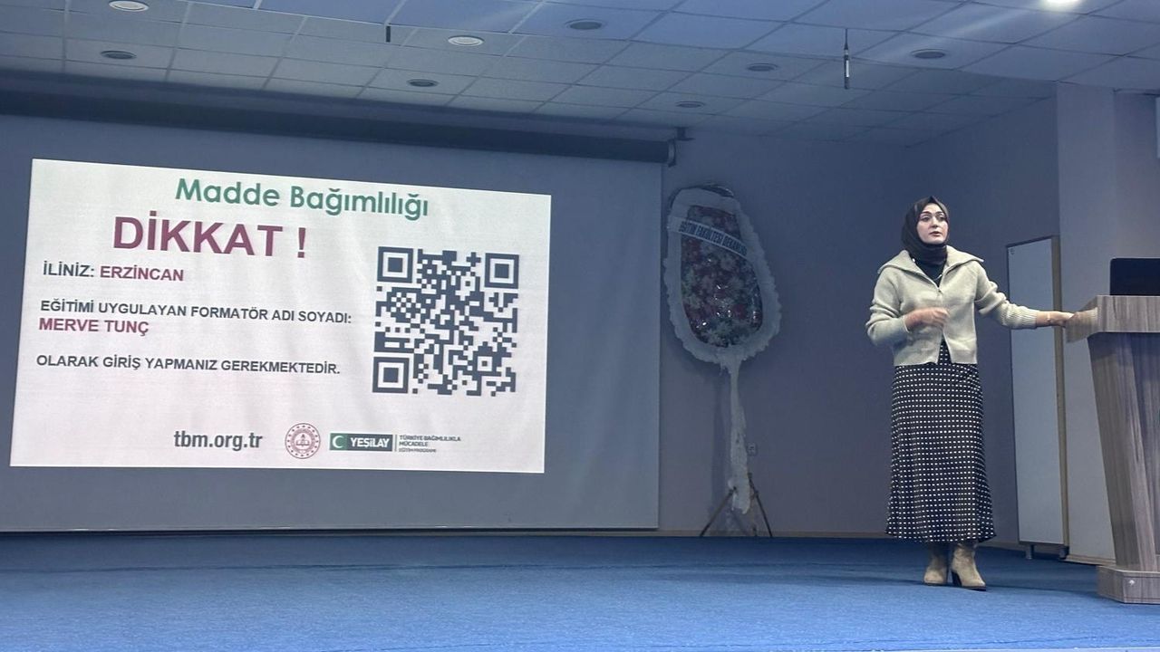 Seminerin konuşmacısı, Aile ve Sosyal Hizmetler İl Müdürlüğünde görev yapan Psikolojik Danışman Merve Tunç oldu. Tunç, bağımlılığın yalnızca madde kullanımıyla sınırlı olmadığını vurgulayarak; teknoloji bağımlılığı, sosyal medya bağımlılığı ve davranışsal bağımlılıkların da günümüz gençliğini etkileyen kritik problemler arasında yer aldığını belirtti. Sunumunda bağımlılık türlerine ilişkin bilimsel veriler paylaşan Tunç, bağımlılığın psikolojik, biyolojik ve sosyal boyutlarını öğrencilerle detaylı şekilde ele aldı.