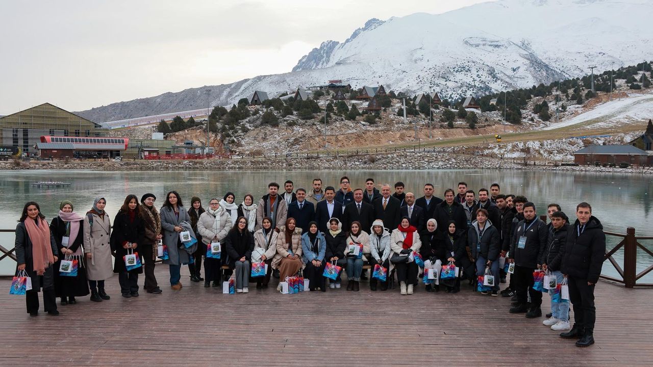 "Erzincan, Anadolu'nun omurgalarından olan bir şehir. Doğasıyla insanı büyüleyen bir şehir. Görüyorsunuz Ergan Dağı 15 kilometre uzunluğundaki pistiyle dünyada önemli kayak merkezlerinden biri. Şu anda yapılan yeni otelimiz, bungalov evlerimiz ve birçok yapısıyla yılın 12 ayı hizmet veren bir merkezden bahsediyoruz. Siz değerli misafirlerimizi, geleceğimizin teminatı gençlerimizi burada ağırlamaktan mutluluk duyuyoruz."