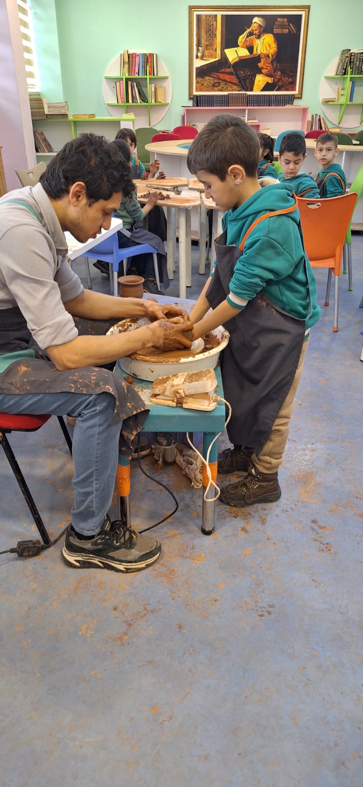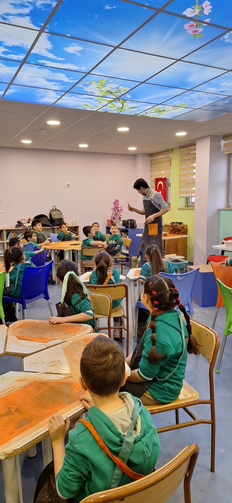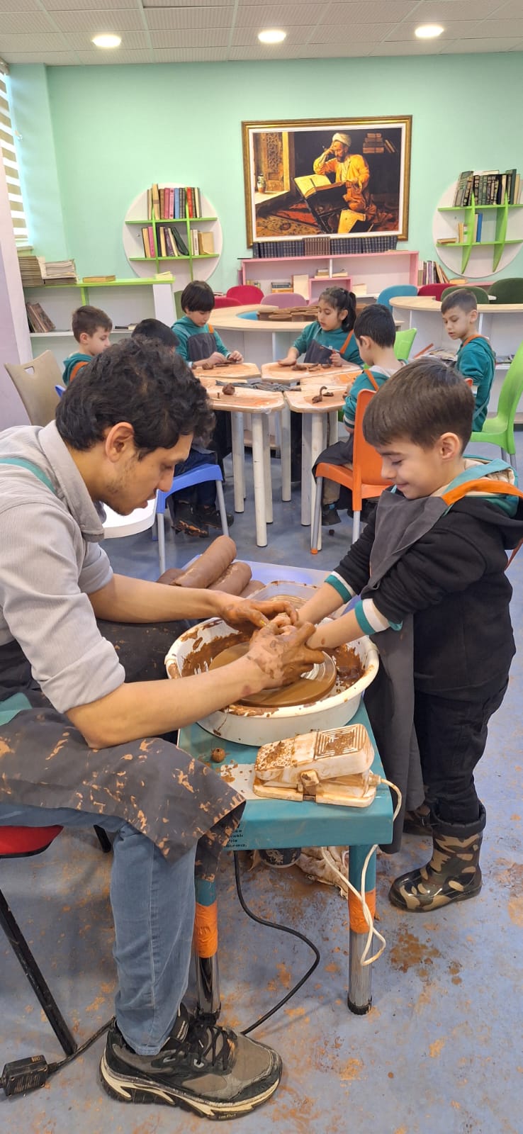 Unutulmaya yüz tutmuş geleneksel el sanatlarının yeni kuşaklara aktarılması amacıyla gerçekleştirilen etkinlikte, çömlek ustası Sabri Ulutürk öğrencilerle bir araya geldi. Tezgâh başında çamuru şekillendiren usta, çömlek yapımının aşamalarını uygulamalı olarak anlattı. Dönen tezgâhta çamurun yavaş yavaş forma kavuşması, çocuklar tarafından büyük bir ilgi ve hayranlıkla izlendi.