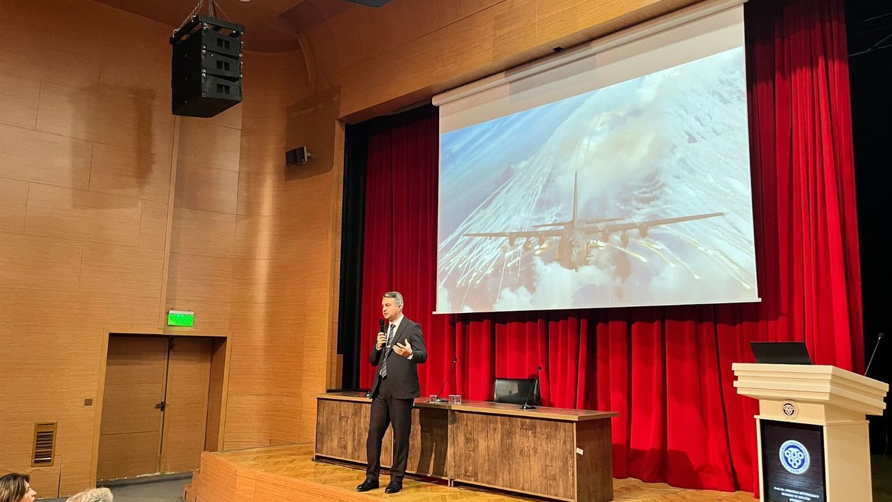 Sunumunda Türk havacılık tarihinden örnekler aktaran Emekli Tuğgeneral Haldun Taşan, modern uçak sistemleri, bakım süreçleri ve savunma sanayisindeki millî projeler hakkında detaylı bilgiler verdi. Öğrencilere teorik bilgilerini sahadaki uygulamalarla nasıl bütünleştirebileceklerine dair önerilerde bulunarak, “Sahip olduğunuz teknik bilgiyi vatan sevgisi, disiplin ve sürekli öğrenme azmiyle birleştirdiğinizde, ülkemizin havacılık alanındaki başarılarına sizler de imza atacaksınız.” dedi.