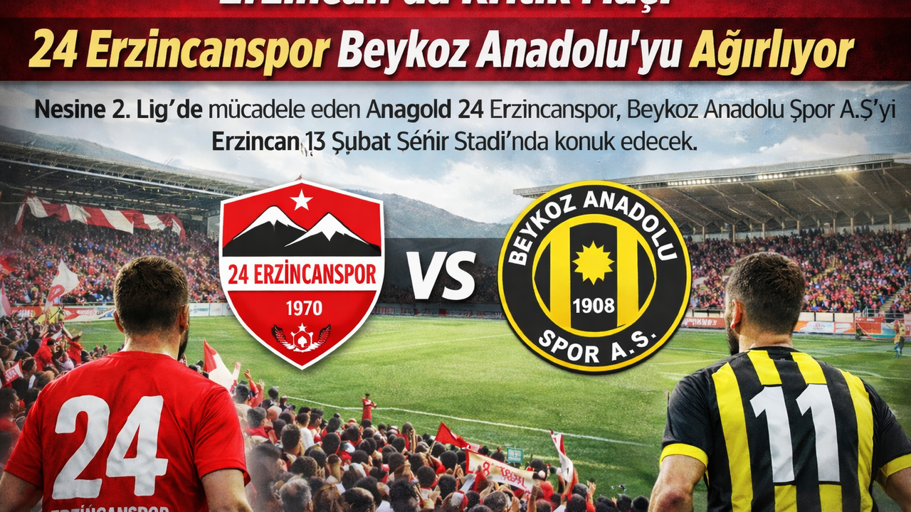 Nesine 2. Lig’de mücadele eden Anagold 24 Erzincanspor, sahasında önemli bir karşılaşmaya çıkıyor. Erzincan temsilcisi, Beykoz Anadolu Spor A.Ş. ile 11 Mart 2026 tarihinde Erzincan 13 Şubat Şehir Stadı’nda karşı karşıya gelecek. Saat 13.30’da başlayacak mücadele, ligin kritik karşılaşmaları arasında gösteriliyor.