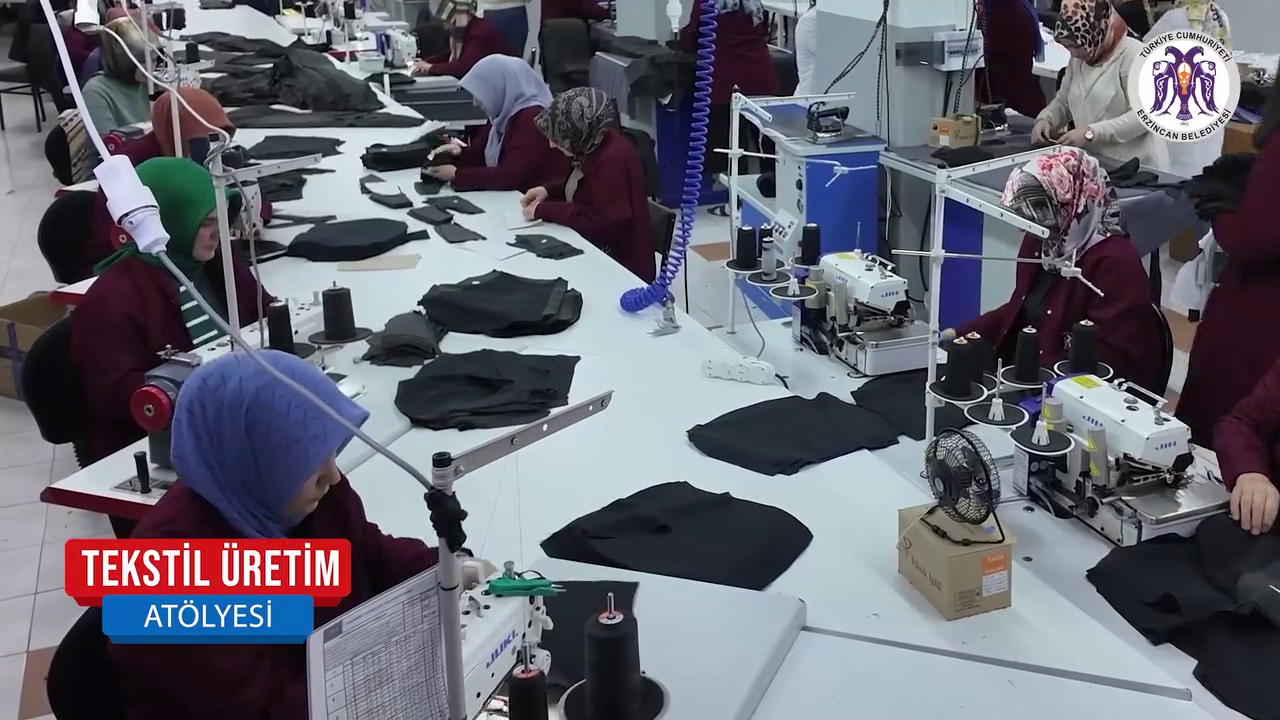 Erzincan Belediyesi’ne ait Eğitim ve Tekstil Üretim Atölyesi bünyesinde, belediyenin kesim ve imalat bölümlerinde iş elbiseleri özenle hazırlanıyor. Kadınların aktif olarak görev aldığı atölyede, hem üretime hem de kadın istihdamına önemli katkı sağlanıyor.