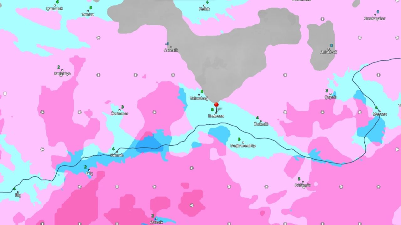 Refahiye ve Otlukbeli: Kar yağışının en etkili olacağı bu ilçelerde sıcaklıklar -8 dereceye kadar düşecek.