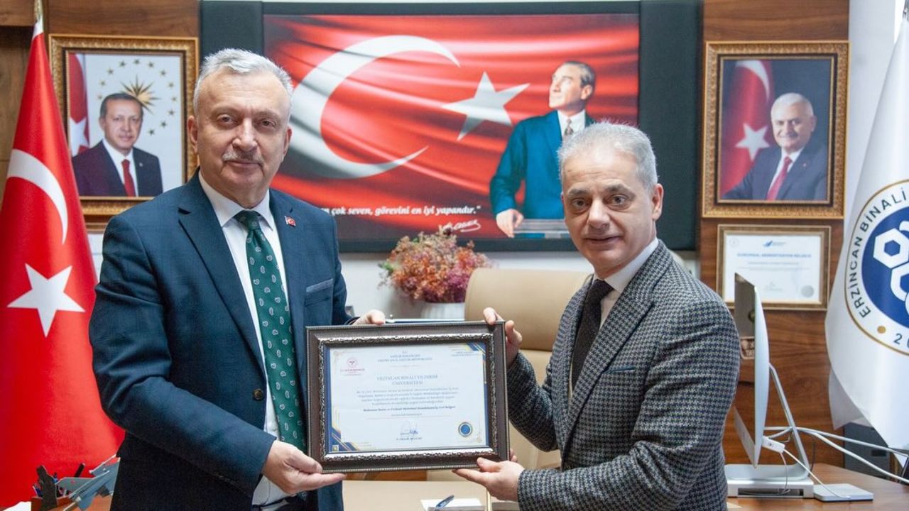 Belge takdim töreni, Erzincan İl Sağlık Müdürü Dr. Cihan Tekin’in katılımıyla gerçekleştirildi. Törende belgeler, Erzincan Binali Yıldırım Üniversitesi Rektörü Prof. Dr. Akın Levent ile EBYÜ Ağız ve Diş Sağlığı Eğitim ve Araştırma Hastanesi Başhekimi Dr. Öğr. Üyesi Fatih Çelik’e takdim edildi.