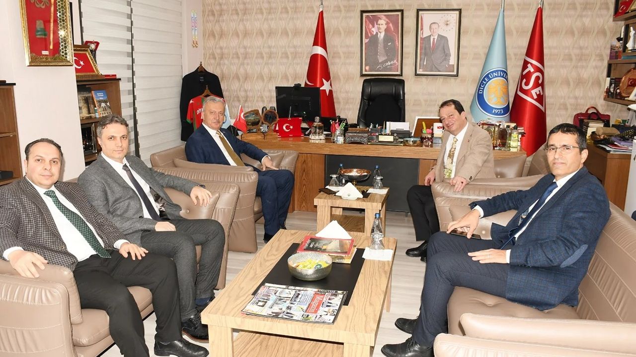 ERZİNCAN Binali Yıldırım Üniversitesi (EBYÜ) Rektörü Prof. Dr. Akın Levent, Dicle Üniversitesi Rektörü Prof. Dr. Kamuran Eronat’ı makamında ziyaret etti. Gerçekleştirilen ziyarette, iki üniversite arasında akademik iş birliklerinin geliştirilmesi, ortak bilimsel çalışmalar ve yükseköğretimde kaliteyi artırmaya yönelik projeler ele alındı.