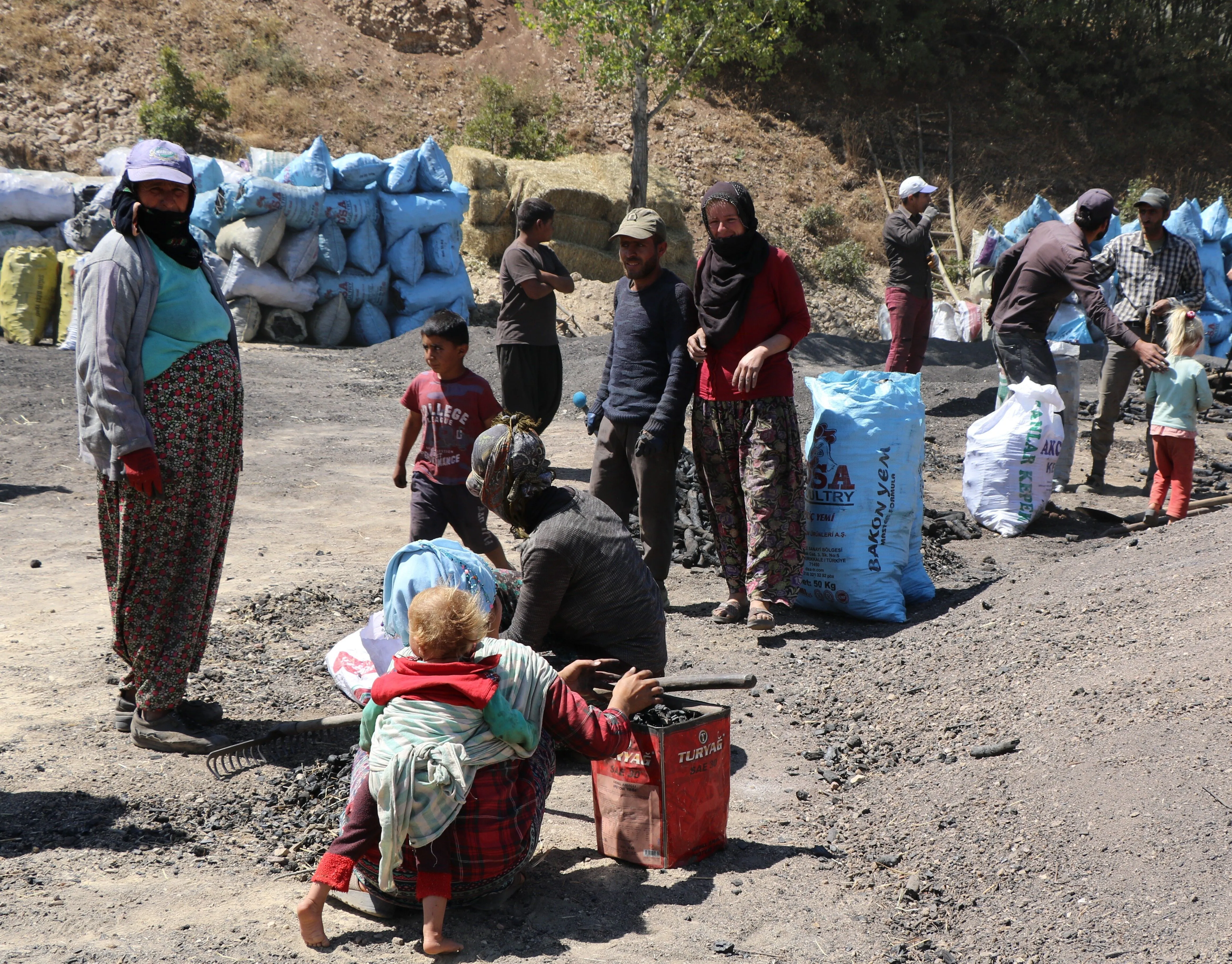 Bu işçiler arasında kadınlar da var, çocuklar da… Kimisi kömür çuvallarını taşıyor, kimisi yemek yapıyor, kimisi küçük kardeşine bakıyor. Bu çadırlarda herkesin bir görevi var. Çünkü bu bir aile mücadelesi.