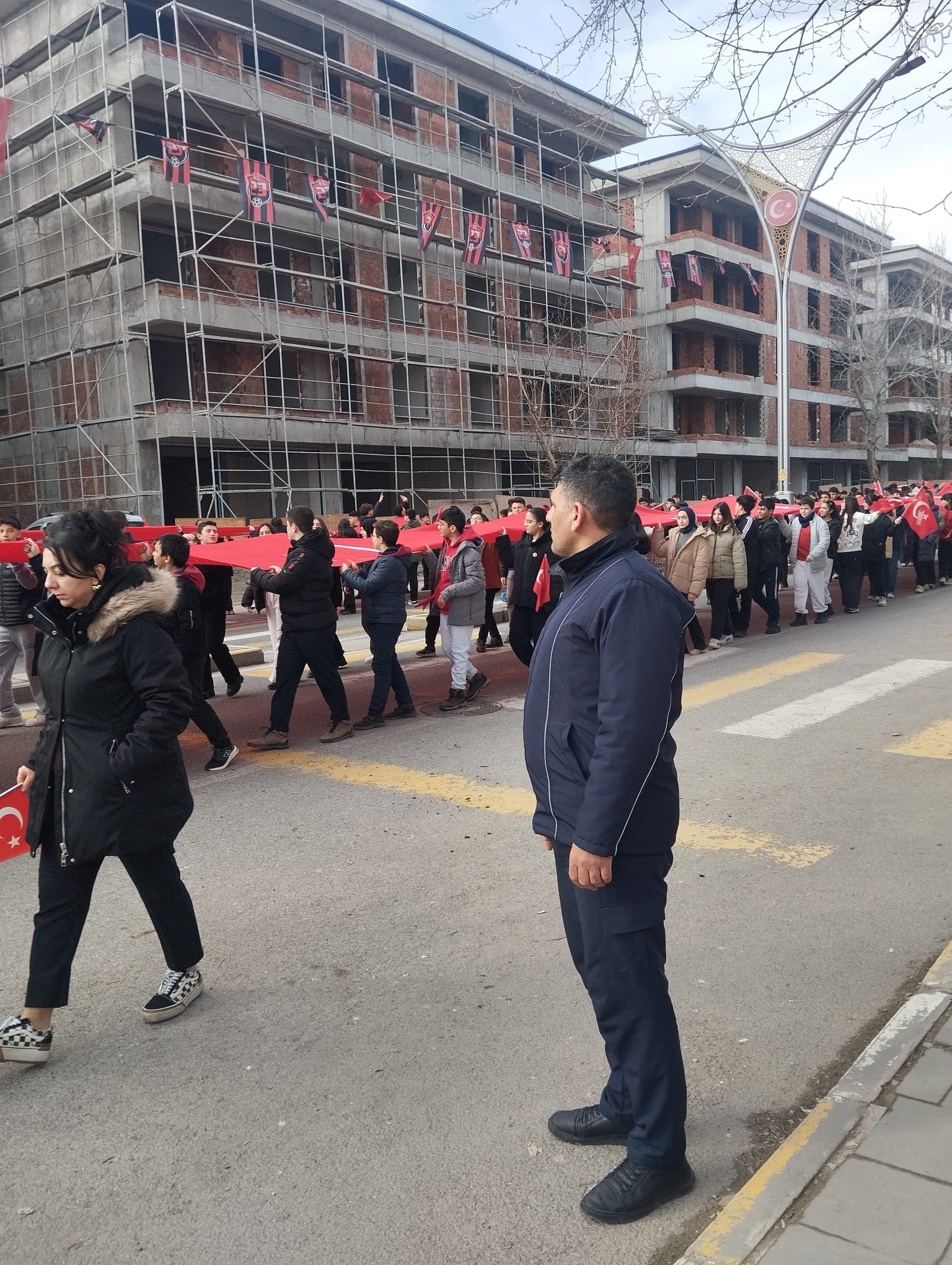 Şehir merkezinde gerçekleştirilen etkinlikte zabıta personeli tam kadro yer aldı. Yürüyüş güzergâhında hem güvenliği sağlayan hem de kortejin coşkusuna ortak olan ekipler, milli birlik ve beraberlik mesajını sahada verdi. Belediye binası önünde ve yürüyüş boyunca dalgalanan Türk bayrakları, etkinliğin anlamını daha da pekiştirdi.