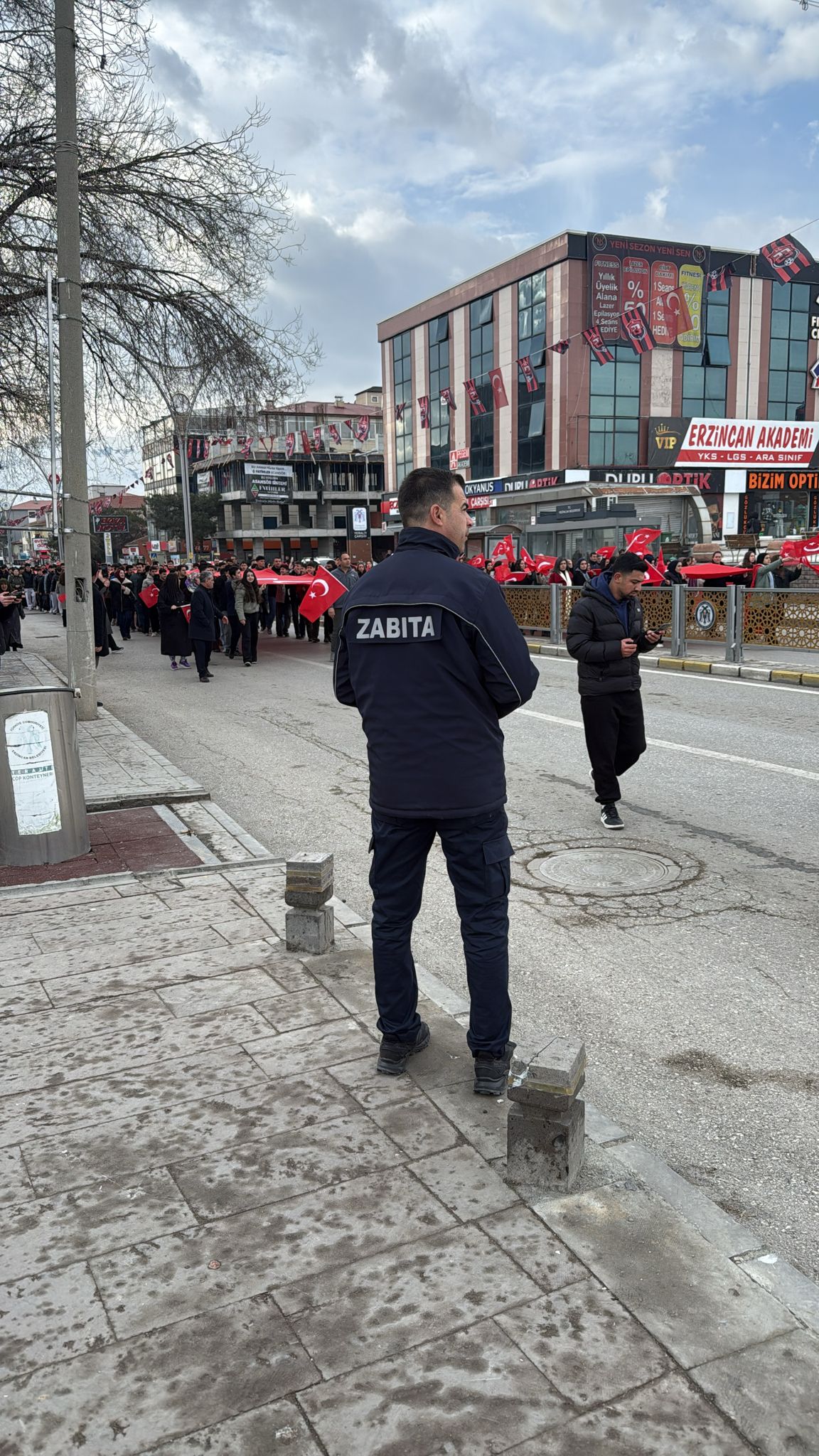 Erzincan’da düzenlenen “Bayrak Yürüyüşü” etkinliği, anlamlı görüntülere sahne oldu. Erzincan Belediyesi Zabıta Müdürlüğü personeli, ay-yıldızlı Türk bayraklarıyla yürüyüşe katılarak etkinliğe güçlü bir destek verdi. Zabıta ekiplerinin yürüyüş boyunca sergilediği birliktelik, vatandaşlardan büyük takdir topladı.