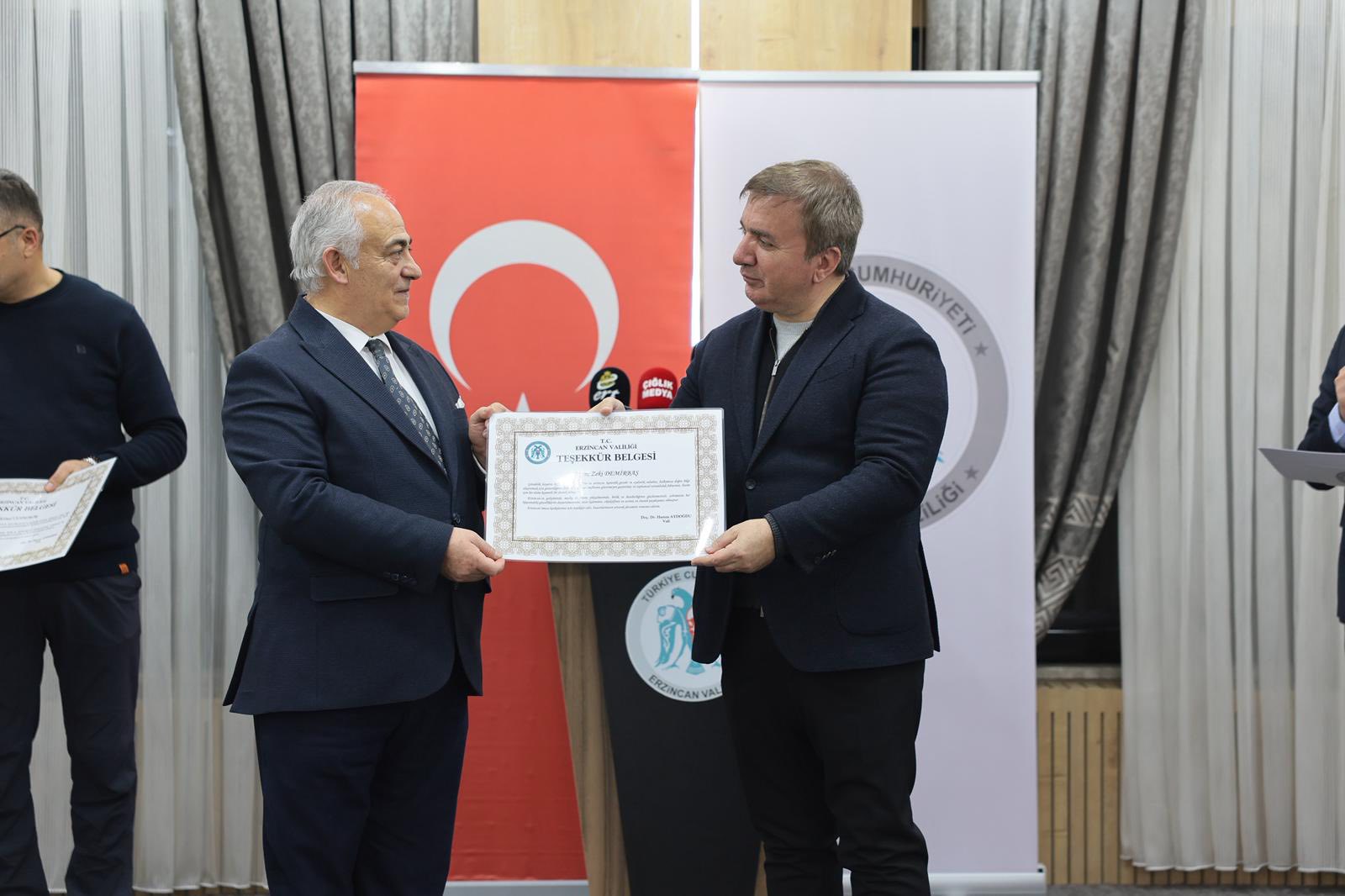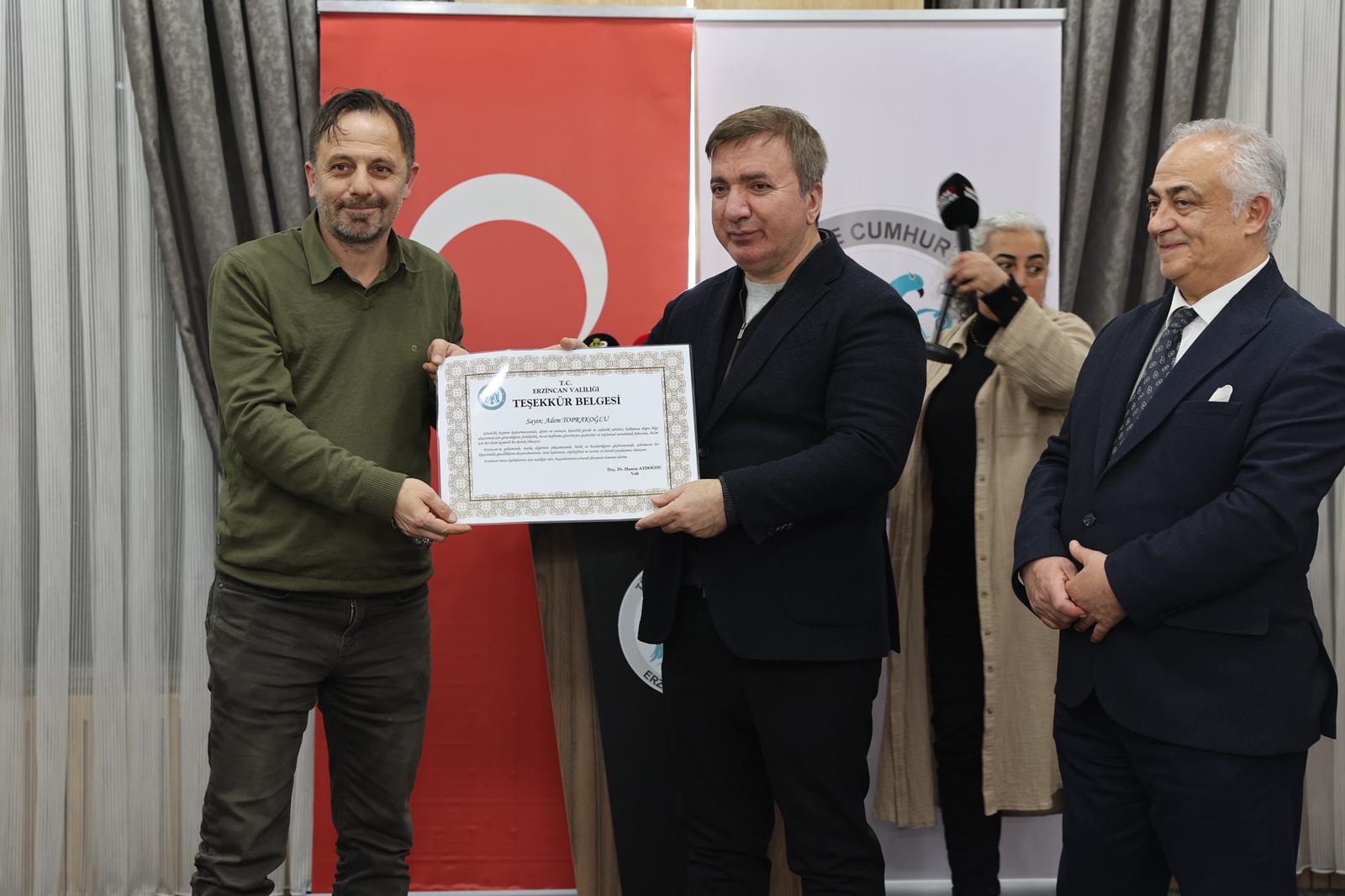 Program kapsamında Erzincan’da görev yapan çok sayıda basın mensubuna teşekkür belgeleri takdim edildi. Erzincannet muhabirleri Seher Özbilir ve Adem Toprakoğlu da teşekkür belgesi alan isimler arasında yer aldı.