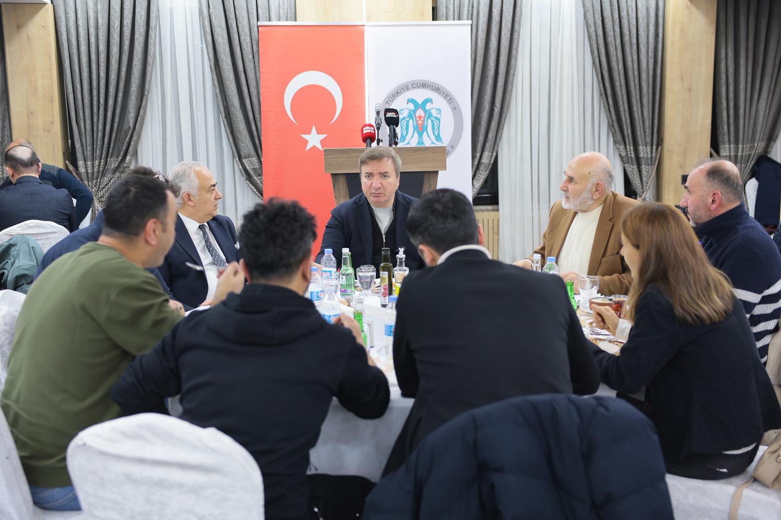Ardından kürsüye çıkan Erzincan Valisi Hamza Aydoğdu, Erzincan basınının sağduyulu ve sorumluluk bilinciyle hareket ettiğini dile getirdi. Basın mensuplarının zor şartlar altında, mesai kavramı gözetmeksizin görev yaptığını belirten Aydoğdu, yaşanan tüm gelişmelerin kamuoyuna doğru, tarafsız ve hızlı bir şekilde aktarılmasında gazetecilerin önemli bir görev üstlendiğini söyledi.