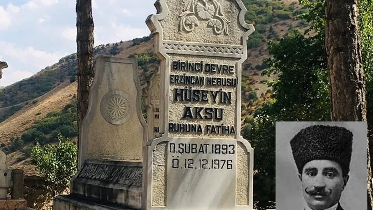 12 Aralık 1976 tarihinde vefat eden Hüseyin Aksu’nun kabri, Erzincan’ın Çağlayan Beldesi’ndeki aile kabristanında bulunuyor. Mücadeleyle geçen ömrüyle hem savaş yıllarının hem de Cumhuriyet’in ilk dönemlerinin tanıklarından biri olarak Erzincan tarihindeki yerini koruyor.