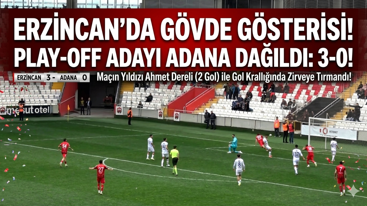 ERZİNCAN (2026) – 13 Şubat Şehir Stadyumu, TFF 2. Lig 37. haftasında ligin en flaş skorlarından birine ev sahipliği yaptı. Formda rakibi Adana 01 FK’yı ağırlayan 24 Erzincanspor, sahanın her alanında üstünlük kurduğu mücadeleden net bir zaferle ayrılarak adeta "devlerin kabusu" oldu.