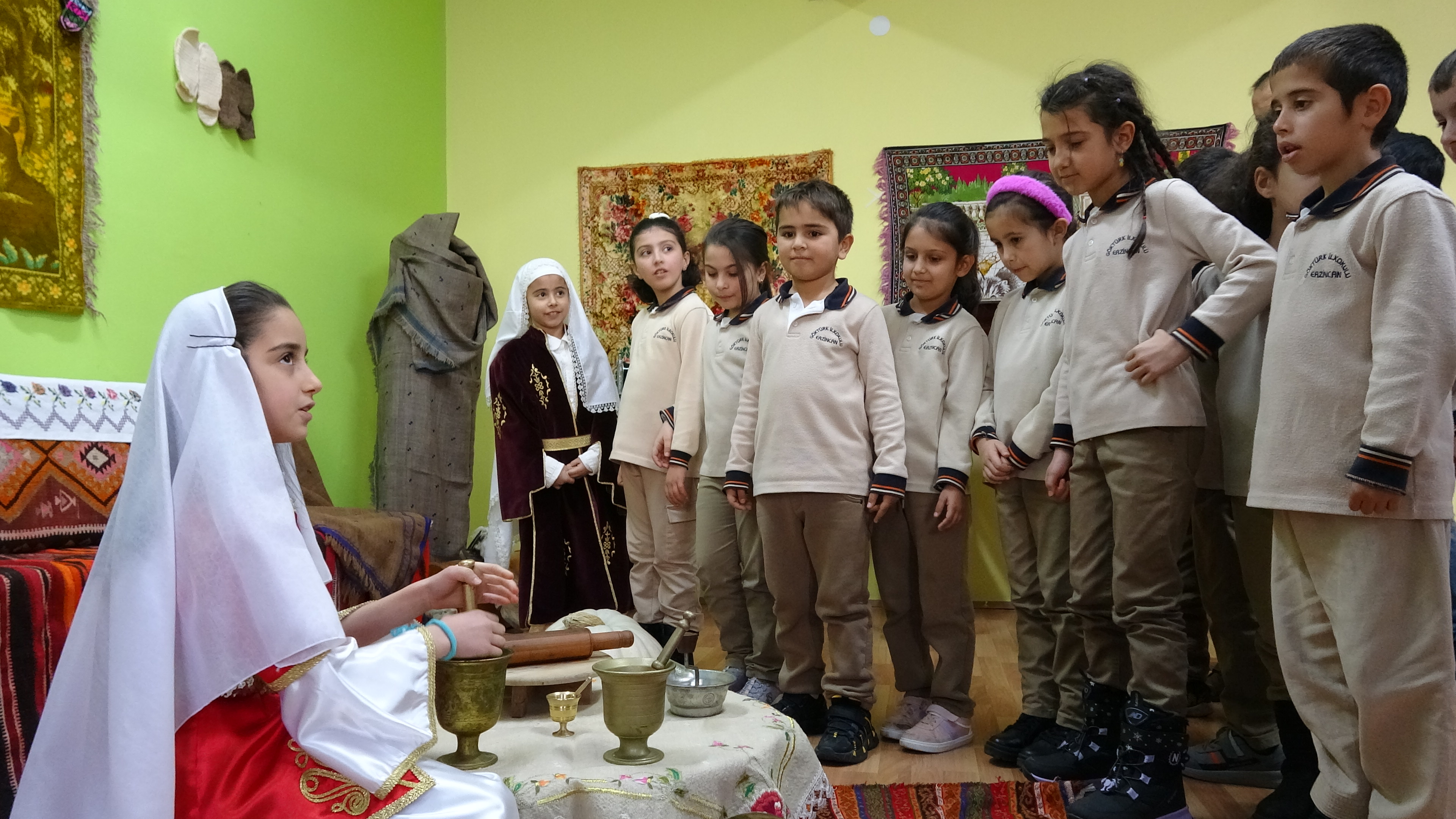 Tamamıyla Erzincan yöresine ait eşyalarımızı, giyeceklerimizi ve yiyeceklerimizi tanıttık. Coğrafi işaret almış Erzincan ürünlerini öğrencilerimize ve misafirlerimize hatırlatmak istedik.