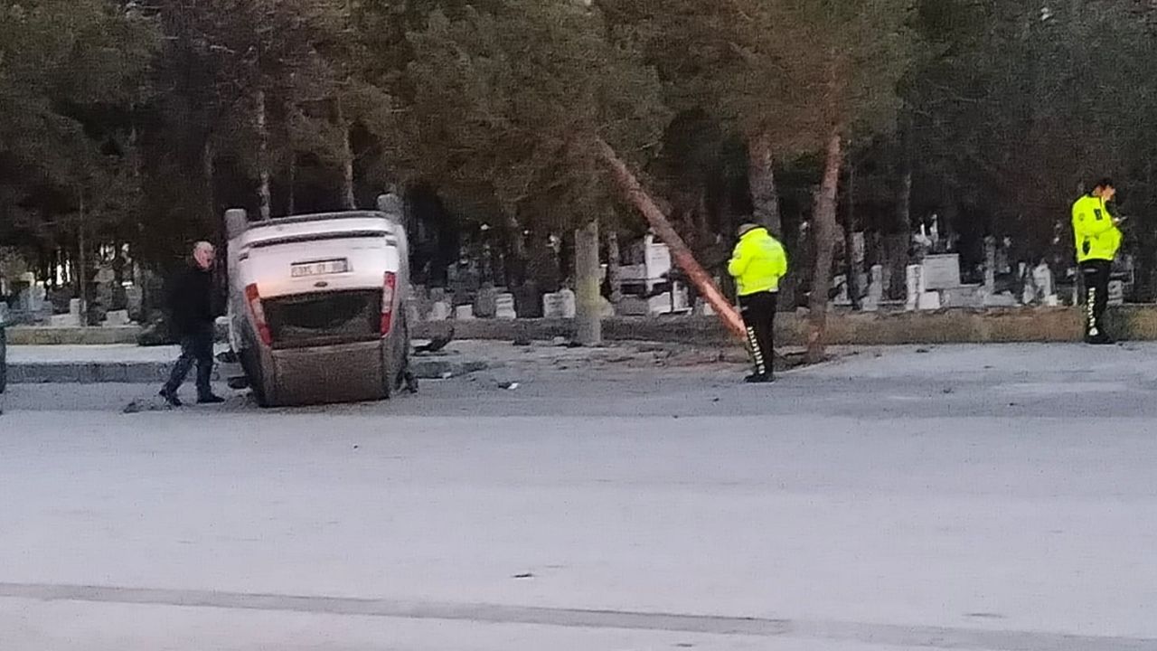 Erzincan’a yakınlarının mezarlarını ziyaret etmek için gelen ziyaretçilerin Terzibaba Mezarlığı Caddesi üzerinde aracın önüne çıkan başıboş köpek kazaya neden oldu.