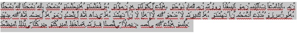 Şahitlik ederiz ki Allah’tan başka ilâh yoktur ve yine şahitlik ederiz ki Muhammed Allah’ın kulu ve elçisidir; bu şehadeti kerîm Peygamber’e tazim ve emin, seçilmiş zatının yüce şerefini yüceltmek maksadıyla dile getiririz; Allah’ın salât ve selâmı onun üzerine olsun; Allah’ım, İbrahim’e ve ailesine rahmet ettiğin gibi Muhammed’e ve ailesine de rahmet eyle, şüphesiz Sen övülmeye lâyık ve yücesin; Allah’ım, İbrahim’e ve ailesine bereket verdiğin gibi Muhammed’e ve ailesine de bereket ihsan eyle, şüphesiz Sen övülmeye lâyık ve yücesin. ASIL OLAN BESMELE HAMDELE SALVELEDİR.