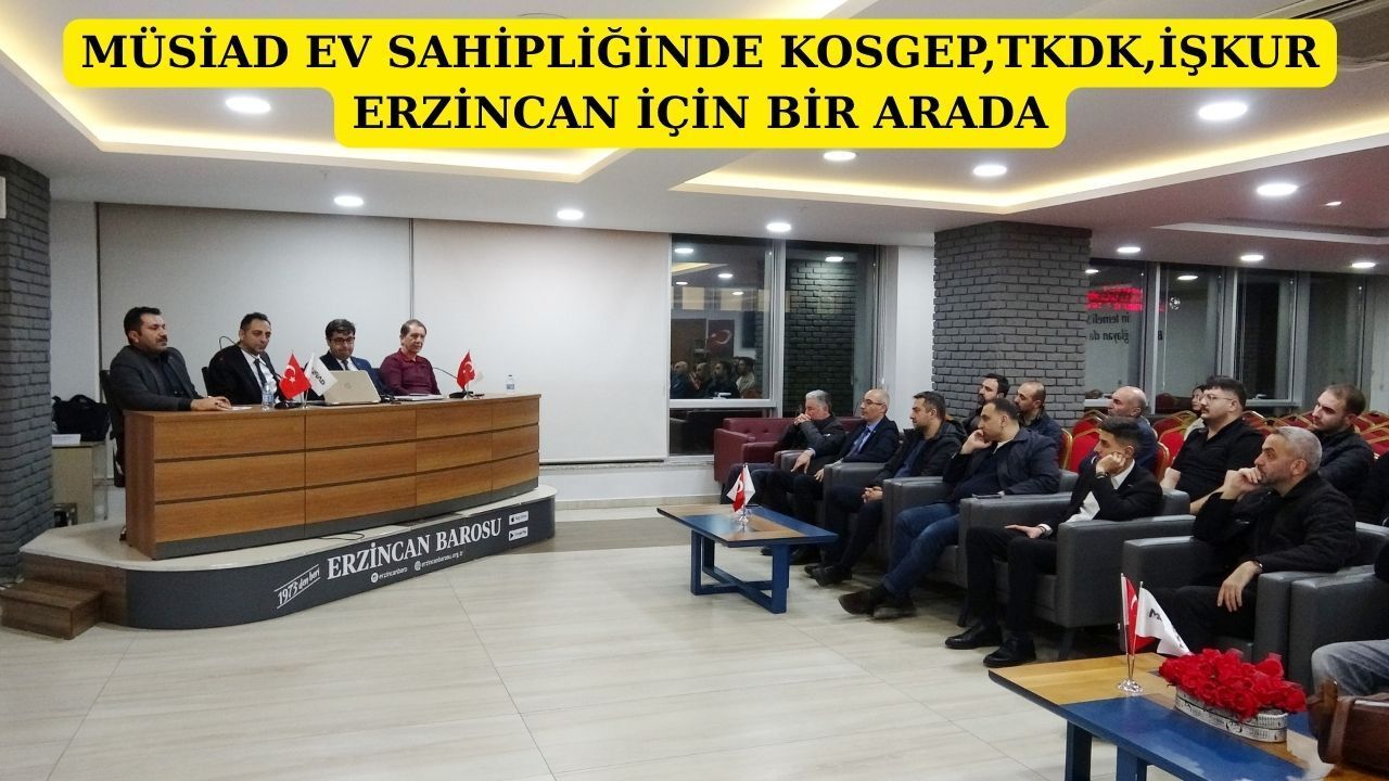 Erzincan’da iş dünyası, kamu kurumlarının üst düzey temsilcileriyle bir araya gelerek 2026 yılı teşvik ve destek programlarını masaya yatırdı. MÜSİAD Erzincan Şubesi’nin ev sahipliğinde düzenlenen toplantıya, İŞKUR İl Müdürü Ahmet Oran, TKDK İl Koordinatörü Metin Bektaş, KOSGEB İl Müdürü Ahmet Çağlar Yılmaz ve KUDAKA Koordinatörü Lokman Altunbilek katıldı. Toplantıda ayrıca MÜSİAD Erzincan Şube Başkanı İsmail Miraç Durmaz, Genç MÜSİAD Erzincan Şubesi Başkanı Kerem Buyruk ve çok sayıda üye yer aldı.