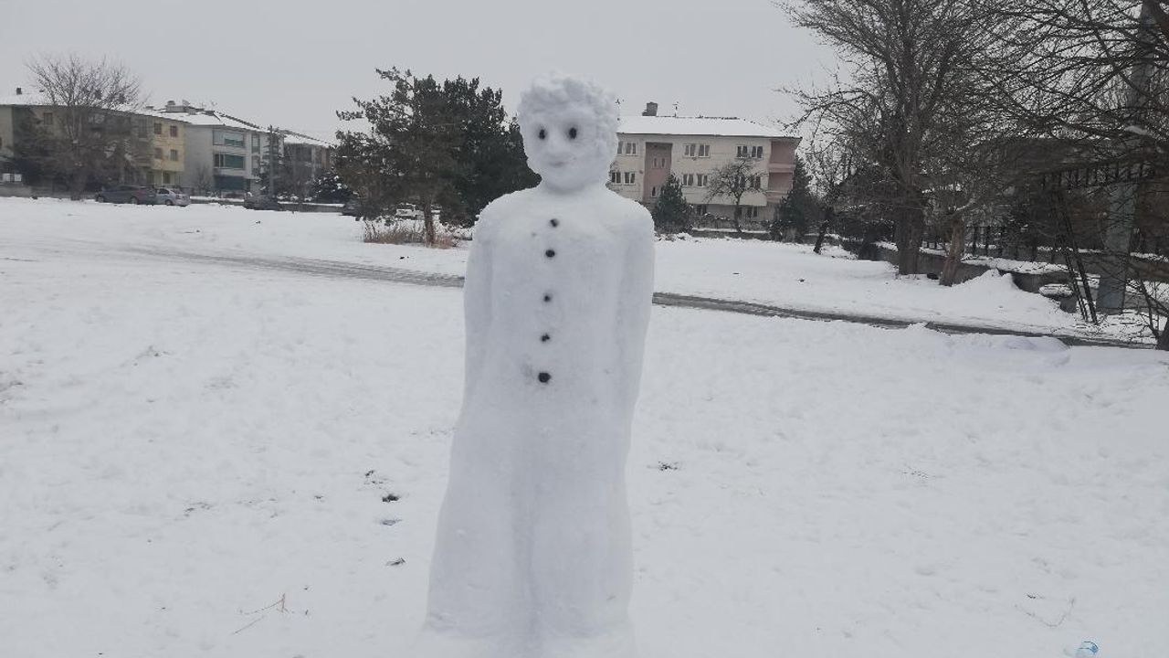 Özenle şekillendirilen ve detaylarıyla dikkat çeken kardan adam, çevreden geçenlerin durup fotoğraf çekmesine neden olurken, kentte kar yağışının yalnızca zorlukları değil, renkli ve keyifli manzaraları da beraberinde getirdiğini gösterdi. Özellikle sade ama simetrik yapısıyla öne çıkan kardan adam, Erzincan’da kış mevsiminin oluşturduğu görsel zenginliğe güzel bir örnek oldu.