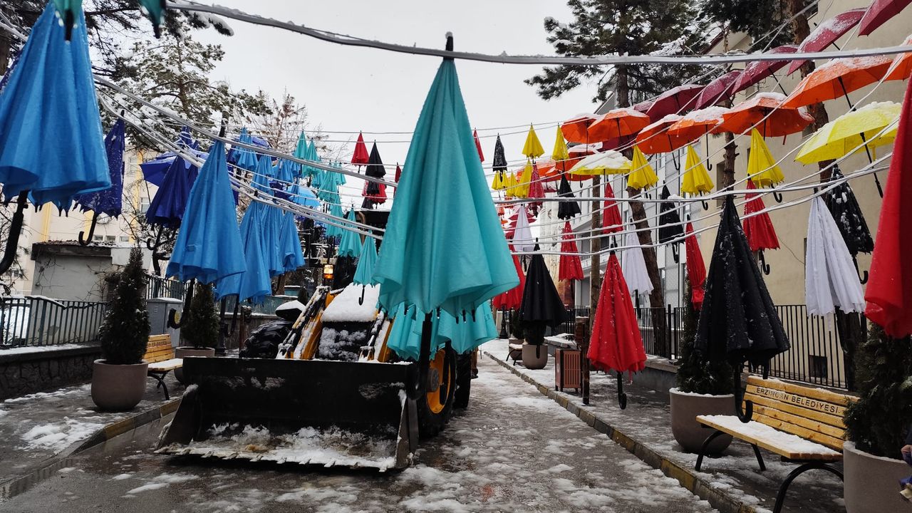 Erzincan’da Vali Yazıcıoğlu Caddesi’nde oluşturulan ve kente görsel zenginlik katan renkli şemsiyeli sokak, yoğun kar yağışı nedeniyle geçici olarak kapatıldı. Yetkililer, hava şartlarının düzelmesiyle birlikte şemsiyelerin yeniden açılacağını açıkladı.