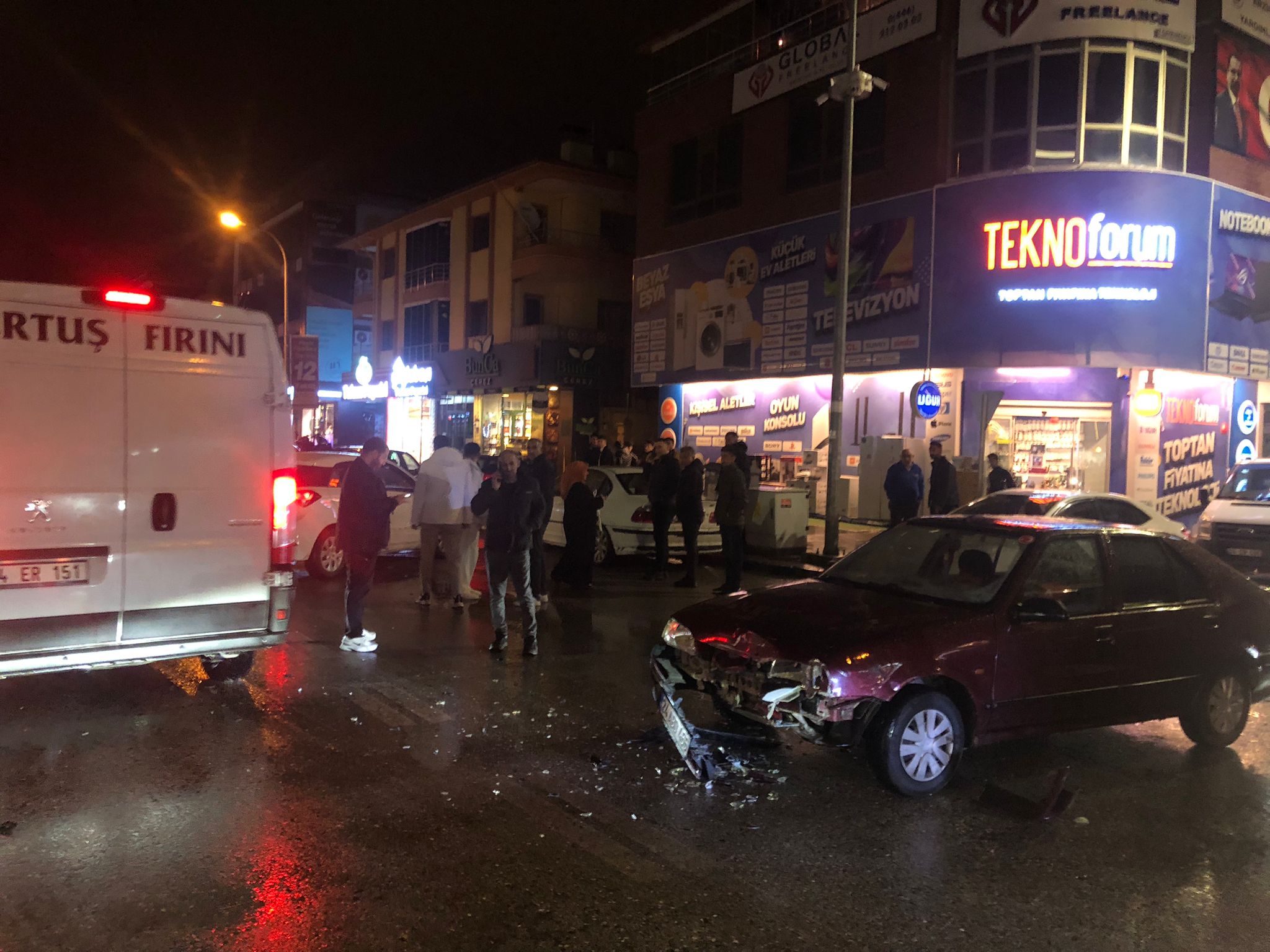 Erzincan’da Cumartesi akşamı Nermi Tombul Caddesi’nde meydana gelen trafik kazasında iki otomobil kavşakta çarpıştı.
