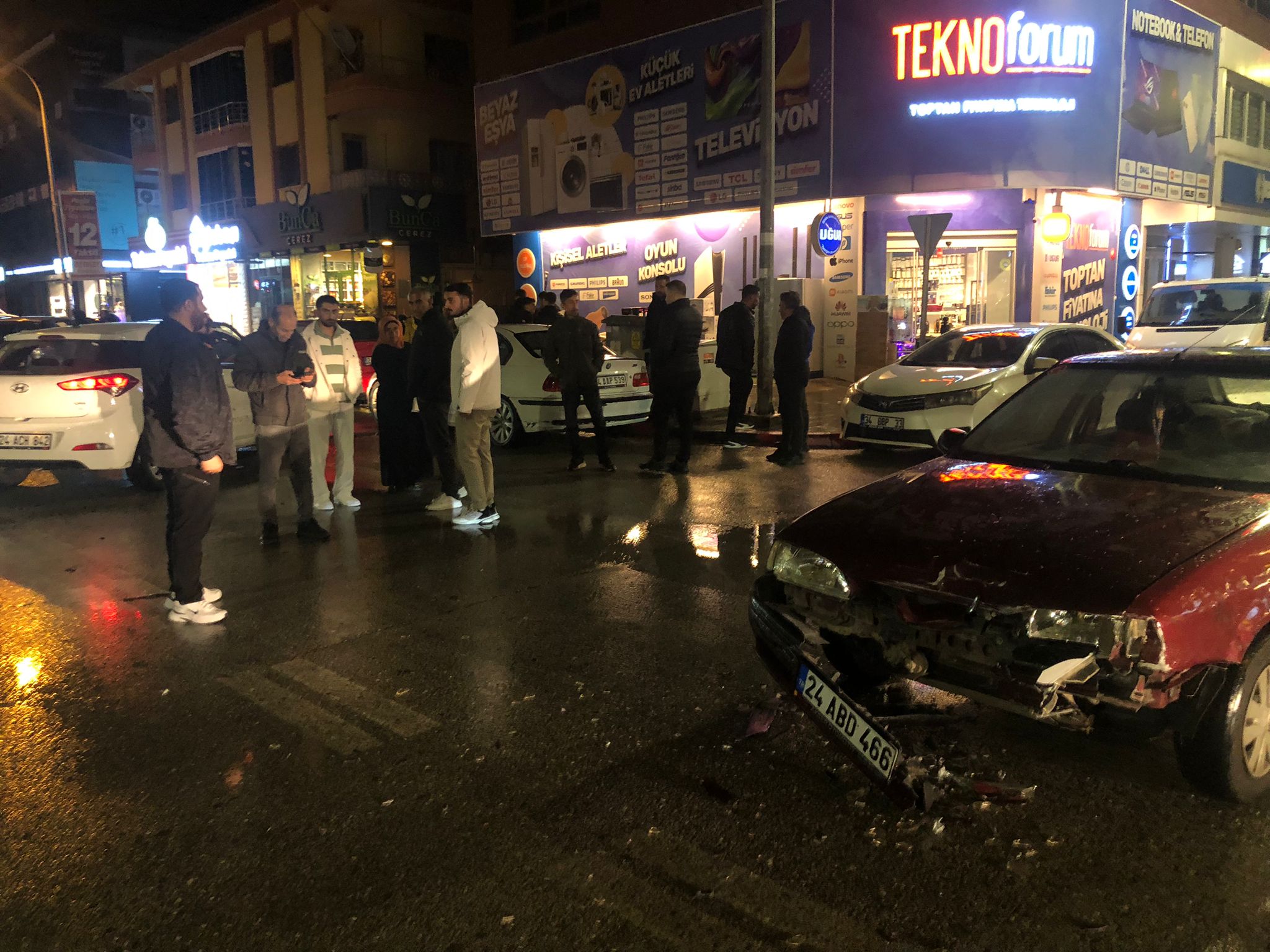 Edinilen bilgilere göre, kavşaktan karşı istikamete geçmek isteyen 24 ABD 466 plakalı otomobil ile ışıklardan gelen 24 ACH 842 plakalı otomobil çarpıştı. Çarpışmanın etkisiyle her iki araçta maddi hasar oluştu.