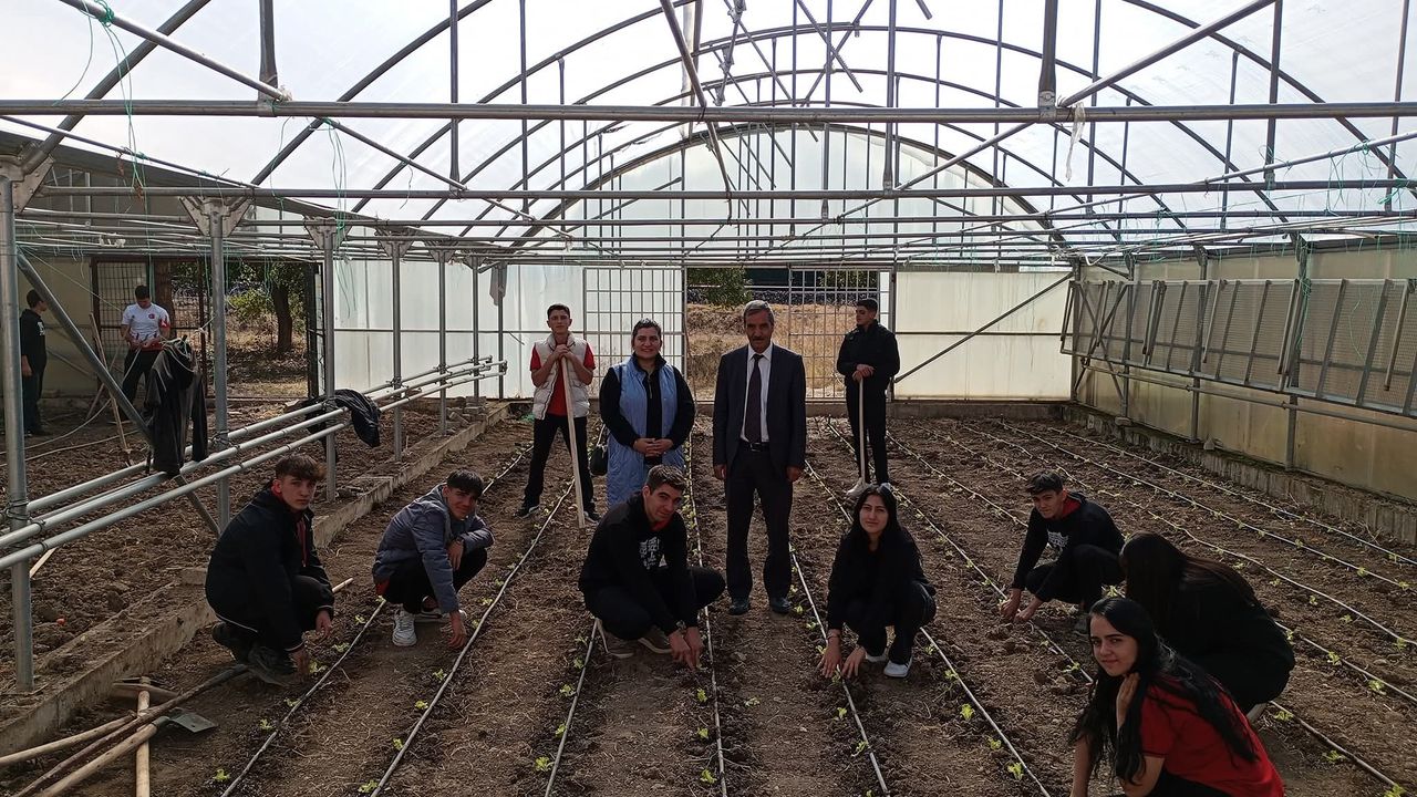 14 Ekim 2025 tarihinde kış sebzelerine yönelik fide dikim çalışmalarına başlayan öğrenciler ve öğretmenler, modern seracılık tekniklerini uygulayarak üretim sürecini yakından takip etti.