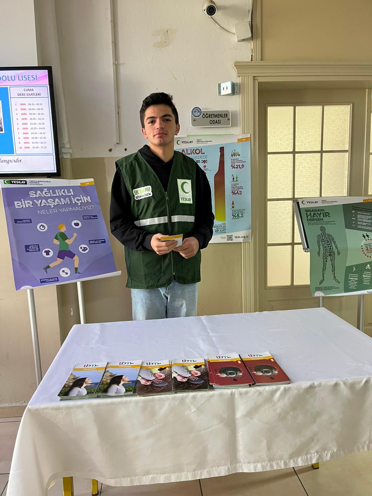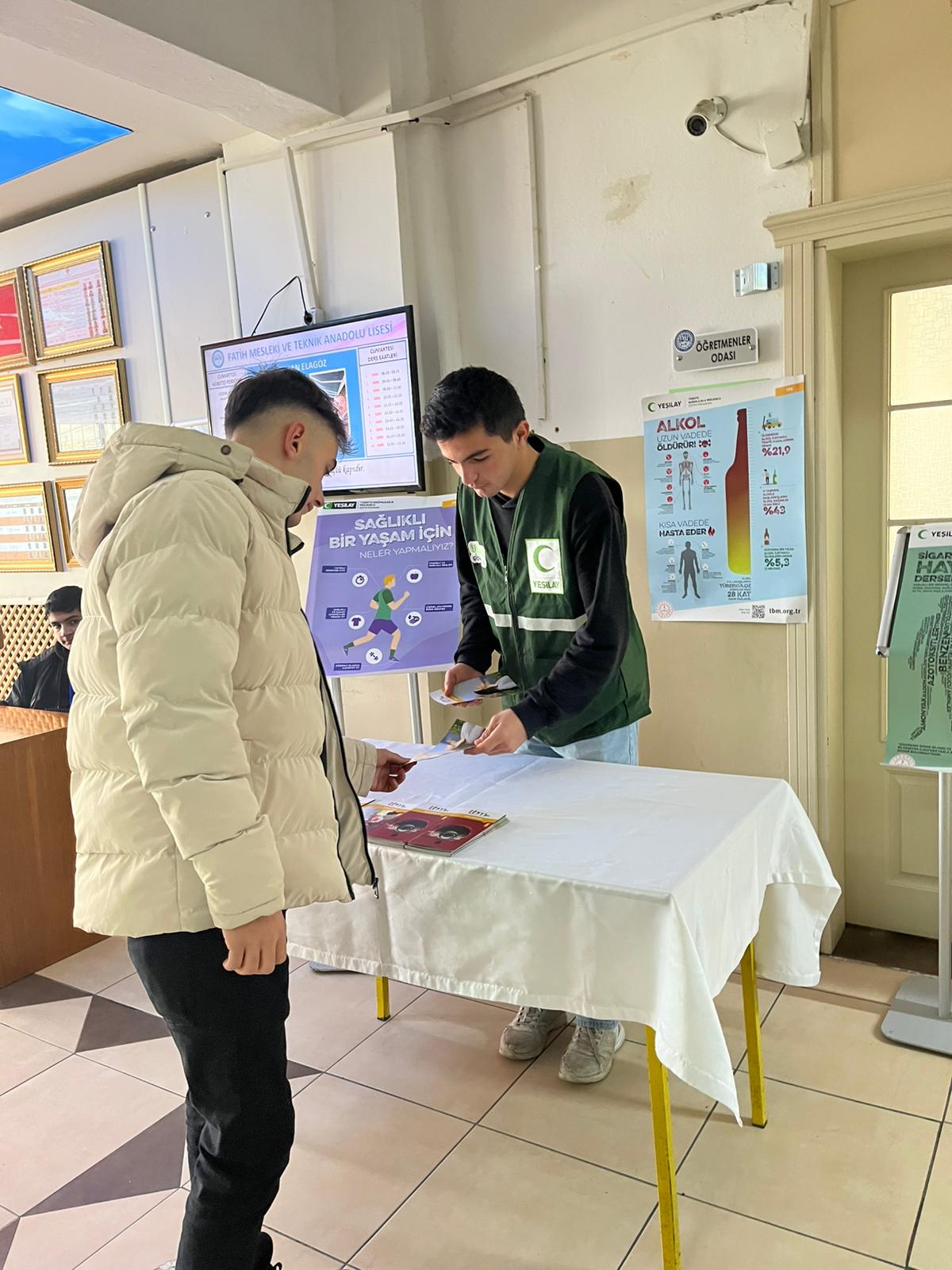 Yeşilay Kulübü Başkanı Yakup Polat, Yeşilay Erzincan Şubesi ve Kulüp Danışman Öğretmeni Paşa Üstündağ’ın destekleriyle okulda bilgilendirme standı kurdu. Polat, arkadaşlarına Sağlıklı Yaşam, Tütün Bağımlılığı ve Alkol Bağımlılığı konularında el broşürleri dağıtarak farkındalık oluşturdu.