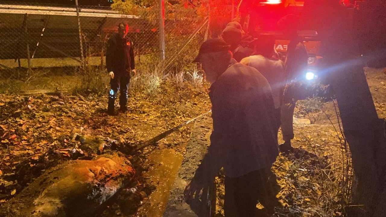 İhbarı değerlendiren itfaiye ekipleri ivedi bir şekilde olay yerine intikal ediyor.Hayvanın kurtarılması için yoğun çaba gösteren itfaiye ekipleri zorlu mücadele sonrası hayvanı kurtararak sahibine teslim ediyor.