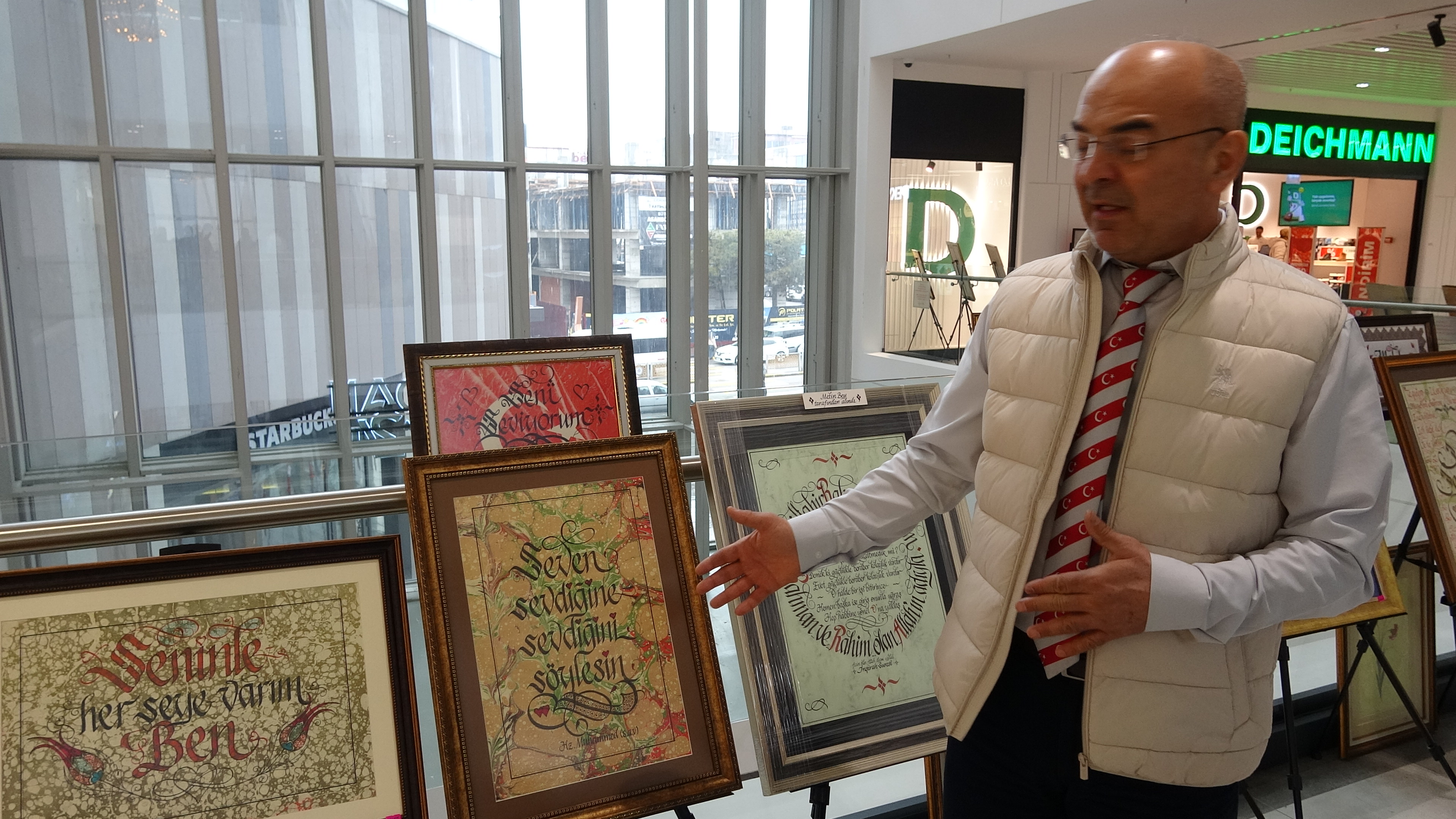Ebru, kaligrafi ve hat sanatçısı Salih Ülker, sevgi teması etrafında hazırladığı eserlerini Meydan24 AVM’de sanatseverlerin beğenisine sundu. 14 Şubat’a özel olarak hazırlanan sergi, ebru sanatıyla sevgi sözlerini bir araya getirmesiyle dikkat çekti.