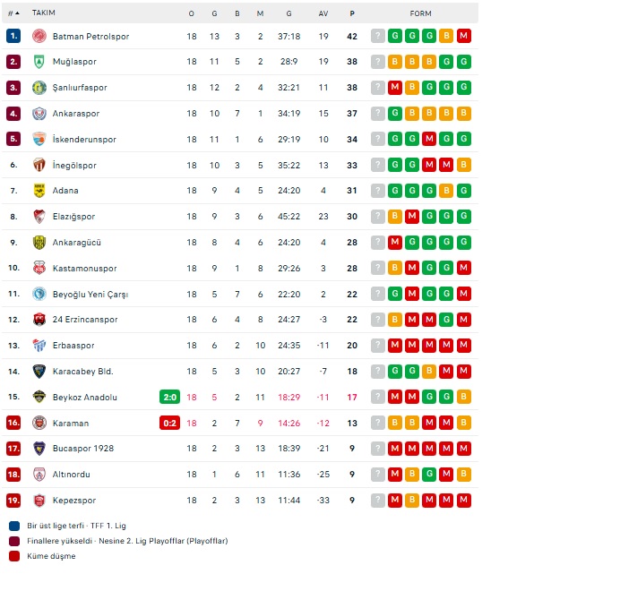 Nesine 2. Lig Beyaz Grup Güncel Puan Durumu