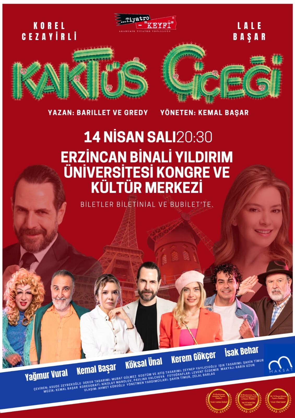 Dünyaca ünlü romantik komedi oyunu “Kaktüs Çiçeği”, güçlü oyuncu kadrosu ve deneyimli yönetimiyle Erzincanlı izleyicilerle buluşmaya hazırlanıyor.