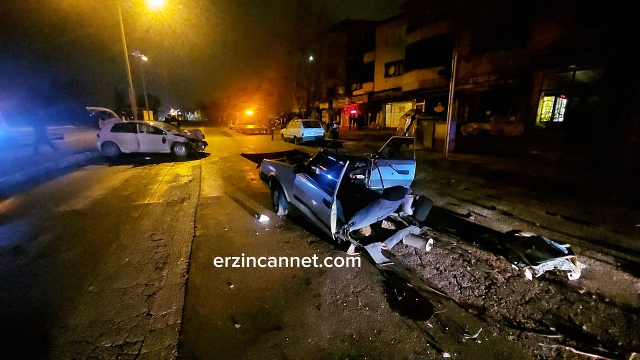 Erzincan'da 2 aracın karışmış olduğu trafik kazasında mucize eseri kurtuldular.