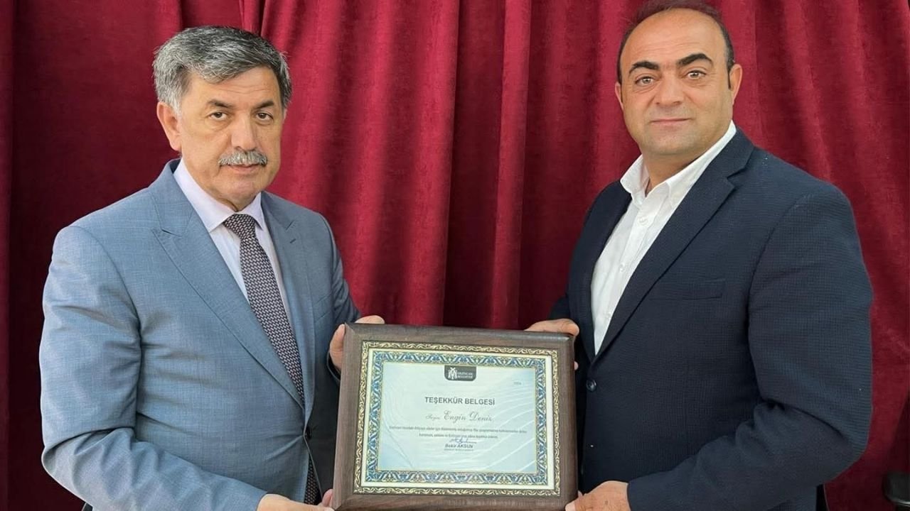 Erzincan Belediye Başkanı Bekir Aksun, Ramazan ayında ihtiyaç sahibi ailelere desteğinden dolayı Altınbaşak Belediye Başkanına hediye ve teşekkür belgesi ile ilgili açıklama yaptı: