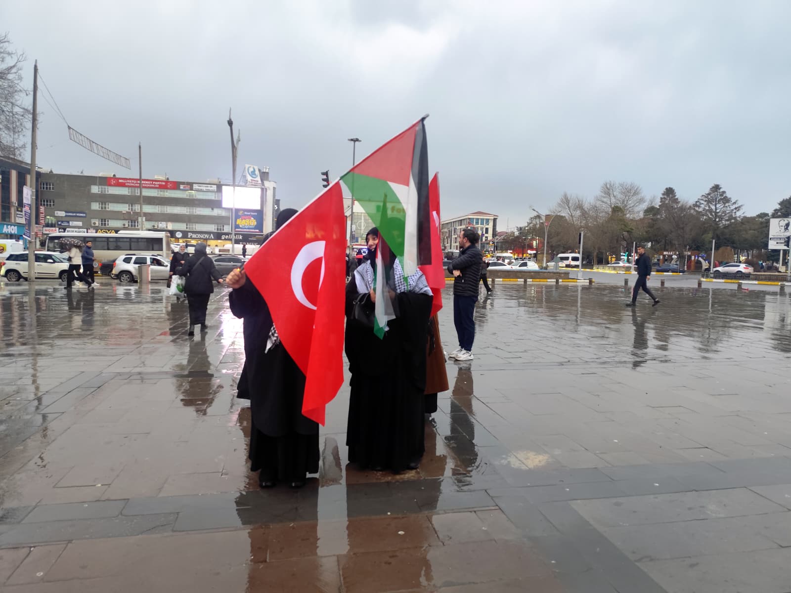 Yağmur altında toplanan kalabalık, sadece bir coğrafyada yaşanan çatışmaları değil, insanlığın ortak vicdanını ilgilendiren bir dramı gündeme taşıdı. Slogan atmak yerine sessiz ve kararlı bir duruş sergileyen vatandaşlar, yapılan açıklamayı dikkatle dinledi.