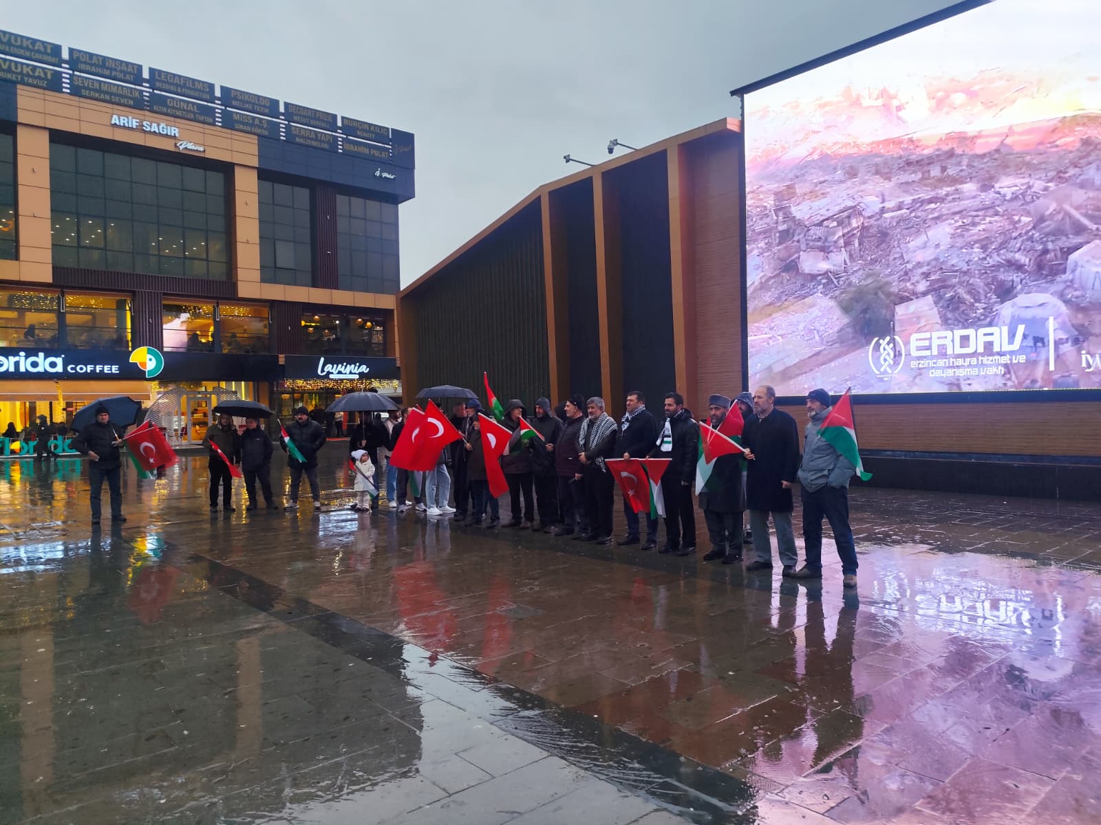 Yağmurun altında uzun süre meydanı terk etmeyen vatandaşlar, yapılan duanın ardından sessizce dağıldı. Erzincan’daki bu buluşma, zor hava koşullarına rağmen vicdan çağrısının karşılık bulduğunu bir kez daha gösterdi.
