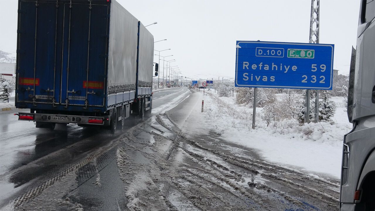 Türkiye’nin birçok ilinde olduğu gibi Erzincan’da kara teslim oldu. Erzincan Üniversite Kavşağı’ndan Sakaltutan istikametine ve Yalnızbağ mevkiisinde Gümüşhane istikametine gidecek olan büyük tonajlı araçların geçişine izin verilmiyor.