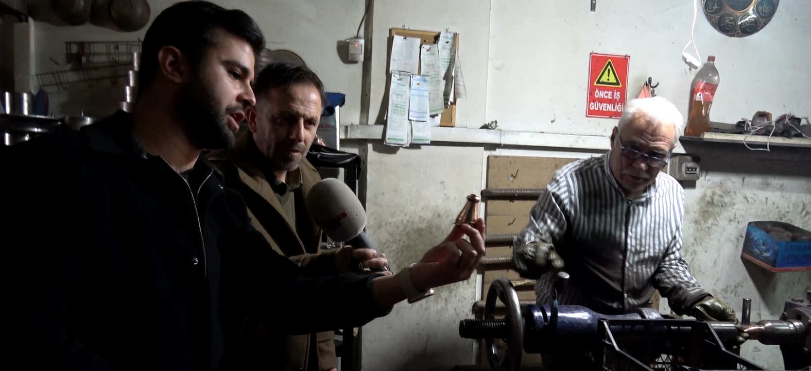 Kırk yıldır bu mesleği sürdüren bir usta ise kalıp hâlindeki bakırdan ibrik kapakları yapıyor. Tecrübeli ustalar en hassas işleme aşamalarında büyük özen gösteriyor.