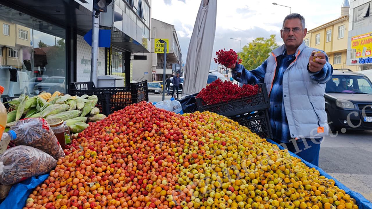 Erzincan’ın dağlarında yetişen dağ alıçı ve gilaburu tezgahlarda yerini koruyor. Mevsimine göre ilgi gören bu iki ürünün birçok hastalığa şifa olduğu biliniyor. Satıcılar mevsimi geçmede alınıp tüketilmesini tavsiye ediyor.