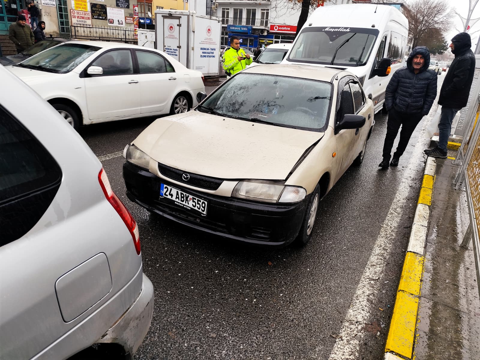 Erzincan’ın en işlek noktalarından biri olan Atatürk Mahallesi Fevzipaşa Caddesi’nde zincirleme trafik kazası meydana geldi. Büyük Çarşı önünde yaşanan kazada üç araç birbirine çarparken, araçlarda maddi hasar oluştu.