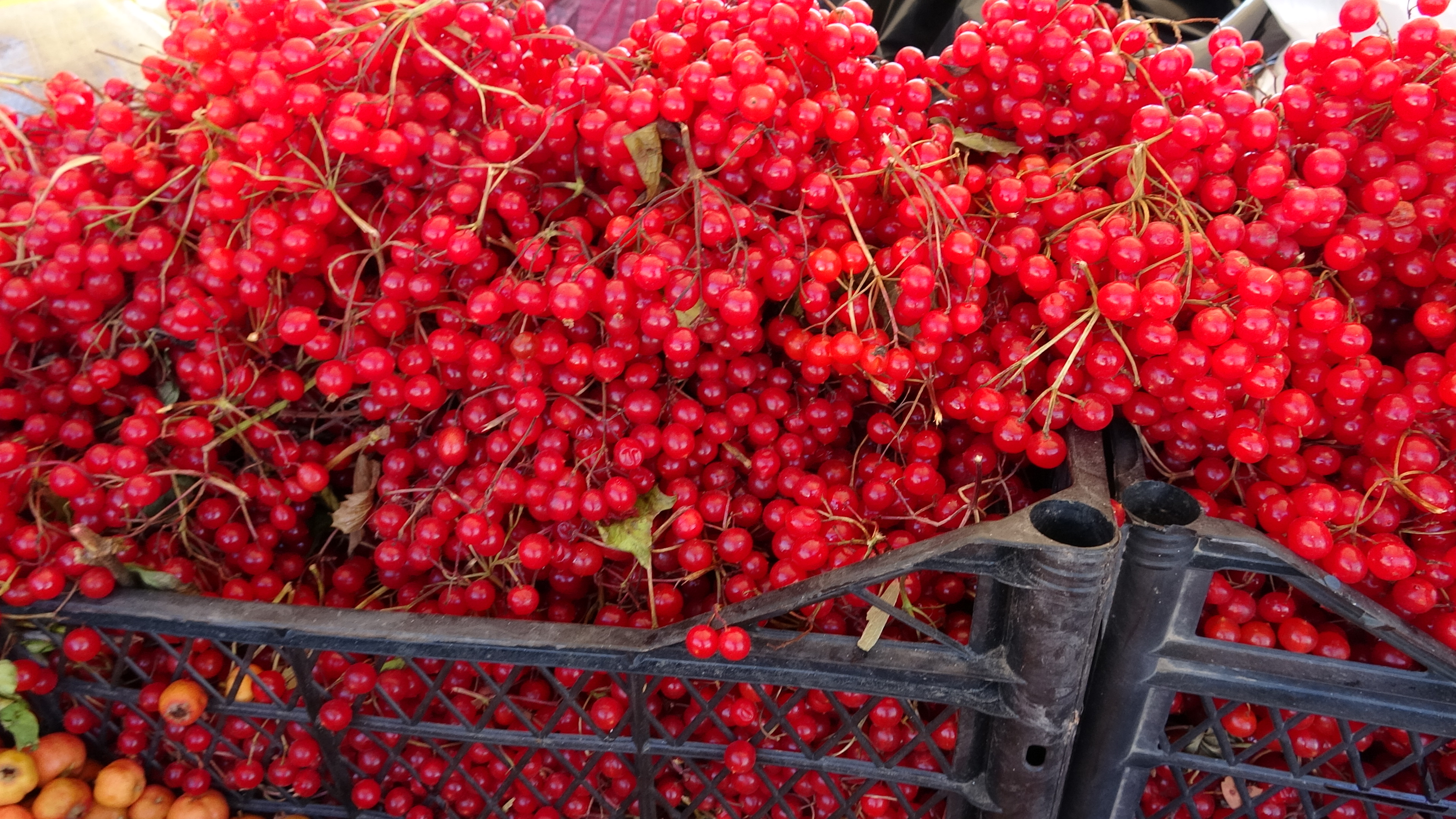 Tezgâhında alıcın yanı sıra gilaburu da büyük ilgi görüyor.