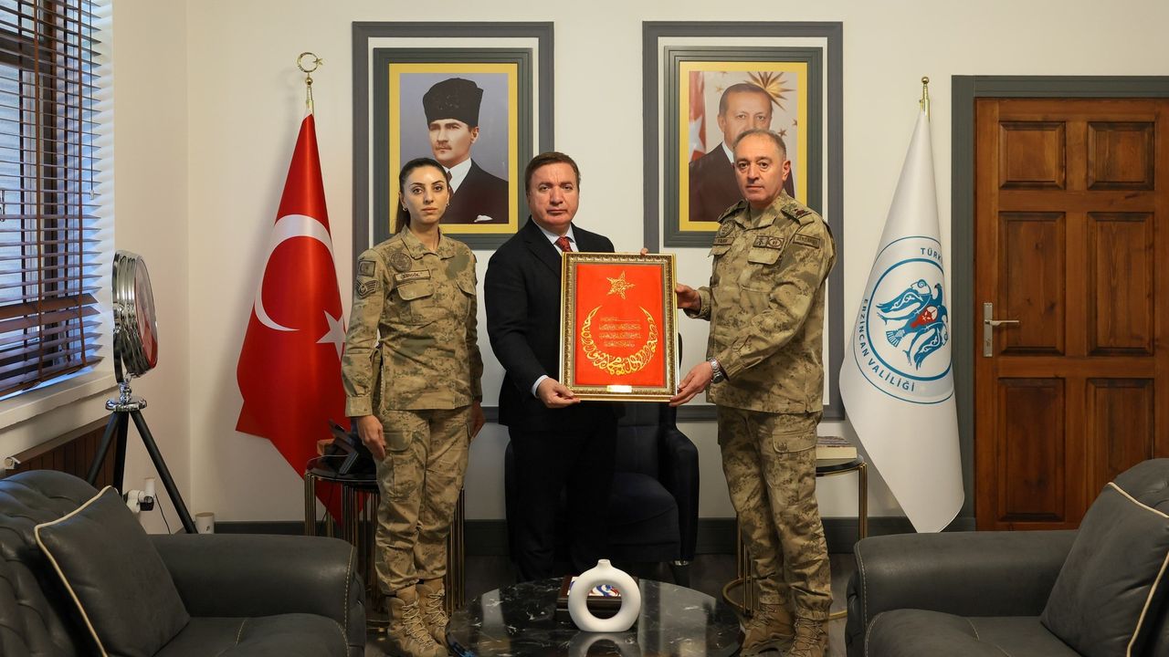 Erzincan İl Jandarma Komutanı Tuğgeneral Veysel Yanık ve Erzincan Emniyet Müdürü Zafer Baybaba, 24 Kasım Öğretmenler Günü dolayısıyla Erzincan Valisi Hamza Aydoğdu’yu makamında ziyaret ederek tüm öğretmenlerin bu anlamlı gününü kutladı.