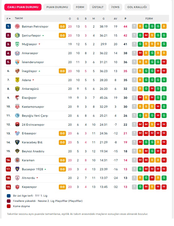 Kalan dakikalarda başka gol olmayınca mücadele Beyoğlu Yeni Çarşı’nın 2-0’lık galibiyetiyle sona erdi. Bu sonuçla 24 Erzincanspor, ligdeki puanını artıramazken 22 puanla 12. sırada yer aldı. Zorlu deplasmandan eli boş dönen Erzincan temsilcisi, önümüzdeki haftalarda çıkış arayışını sürdürmek zorunda kaldı.