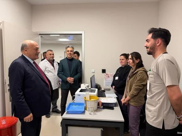 Ziyaretleri kapsamında Erzincan’daki sağlık kuruluşlarında sağlık personeliyle bir araya gelen Karaman, Başhekim Prof. Dr. Ufuk Kuyrukluyıldız’ı makamında ziyaret ederek tüm hekimlerin bayramını kutladı. Sağlık çalışanlarıyla sohbet eden Karaman, özverili çalışmalarından dolayı teşekkür ederek görevlerinde kolaylıklar diledi.