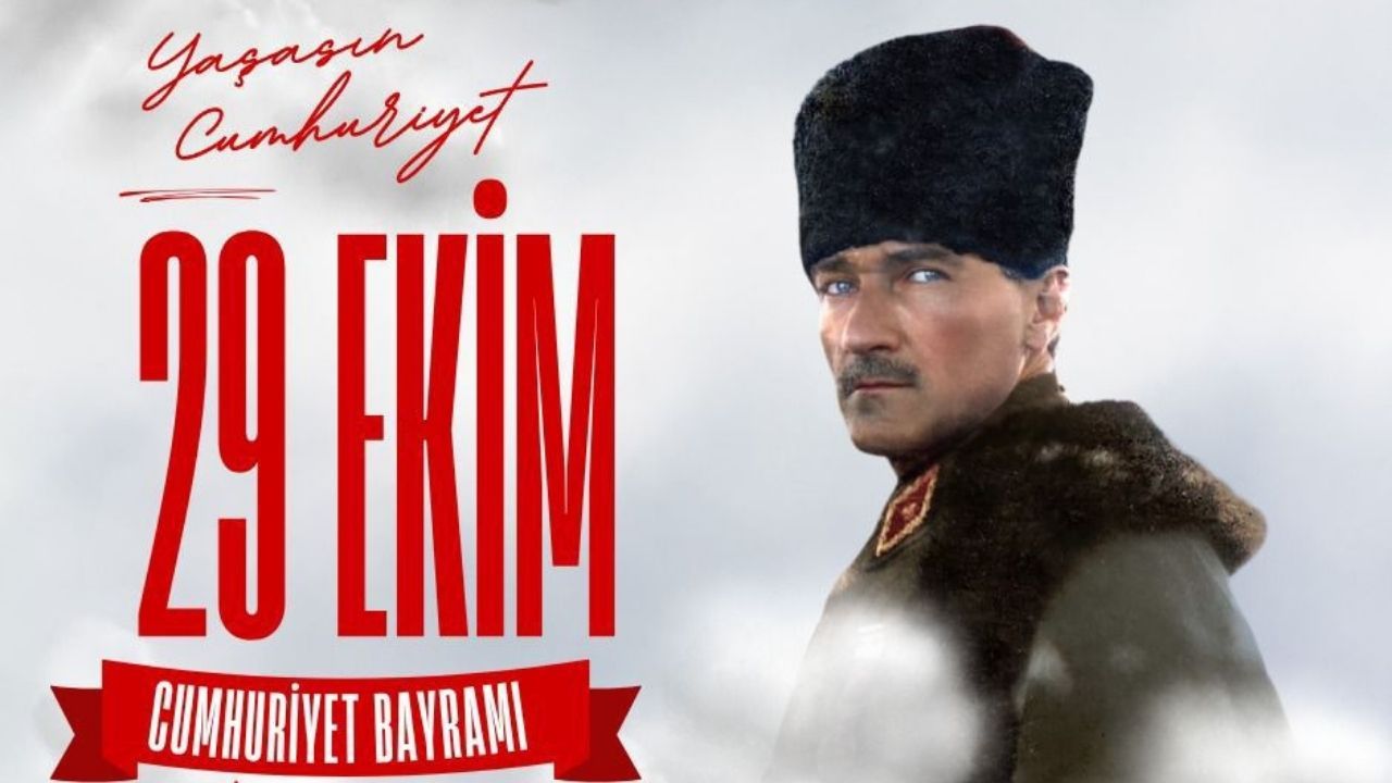 "Türkiye Cumhuriyetimiz, 29 Ekim 1923 tarihinde içeride ve dışarıda karşısına dikilen şer güçlere rağmen Mustafa Kemal ile silah arkadaşlarının kahramanlıkları ve halkımızın olağanüstü fedakarlığıyla kazanılan Kurtuluş Savaşı sonrası kuruldu. Cumhuriyetimiz, Gazi Mustafa Kemal Atatürk’ün zor zamanda öncülük ettiği değerleri hâlâ taşımaya devam ediyor.