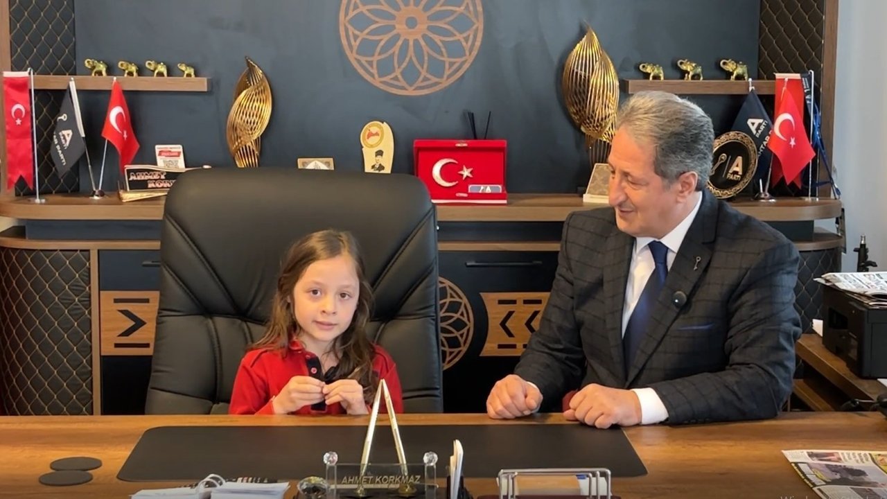 Anahtar Parti Erzincan İl Başkanı Ahmet Korkmaz, 23 Nisan Ulusal Egemenlik ve Çocuk Bayramı’nda dikkat çeken bir etkinliğe imza attı. Korkmaz, makam koltuğunu temsili olarak minik Melek’e devrederek çocukların sesini ön plana çıkardı.