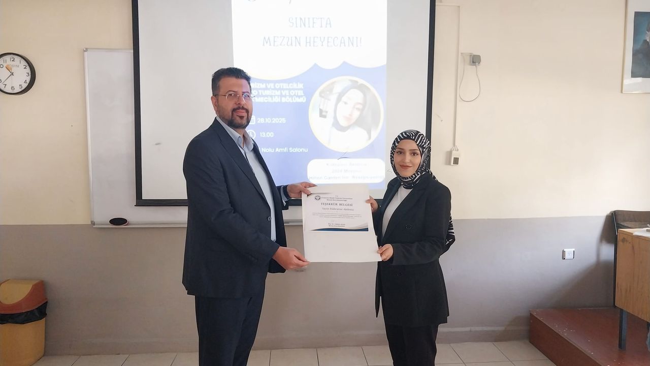 Etkinlik, öğrencilerin yoğun ilgisi ve öğretim elemanlarının katılımıyla gerçekleştirildi. Program sonunda Kübranur Akdeniz’e, samimi paylaşımları için teşekkür edildi.