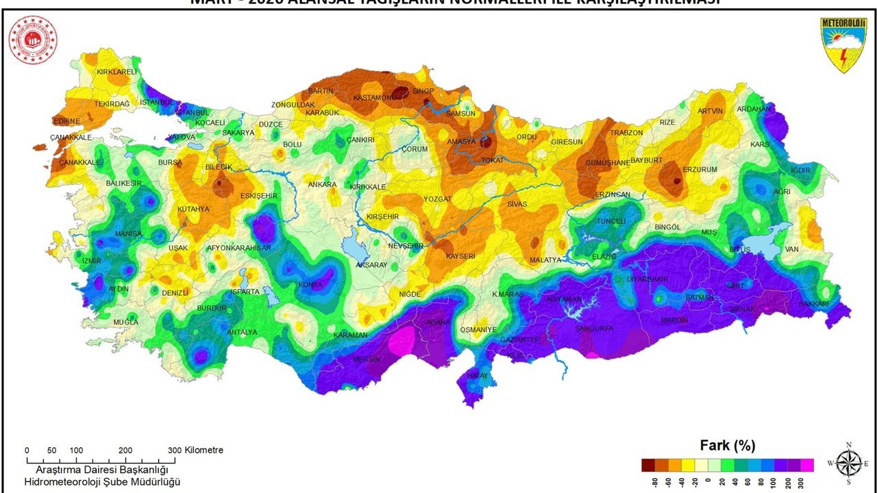 Yağışlar, Edirne, Çanakkale, Bursa, Bilecik, Zonguldak, Bartın, Katamonu, Sinop, Samsun, Amasya, Tokat, Kayseri, Malatya, Gümüşhane, Trabzon ve Erzurum çevrelerinde normallerine göre %60’ın üzerinde azalma oldu.