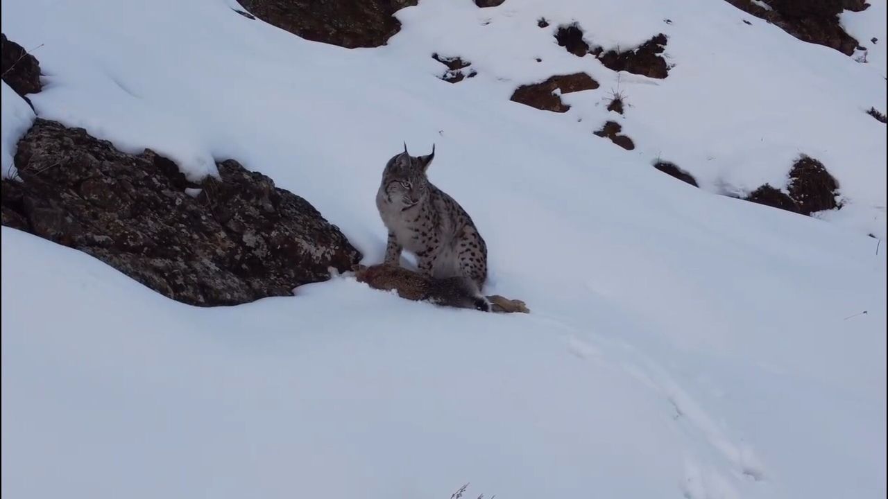 Karla kaplı arazide bir süre avının başında bekleyen vaşak, daha sonra tavşanı ağzına alarak gözden kayboldu. Türkiye’de kesin korunacak türler arasında yer alan vaşakların avlanması halinde 6 aydan 4 yıla kadar hapis cezası uygulanabiliyor.