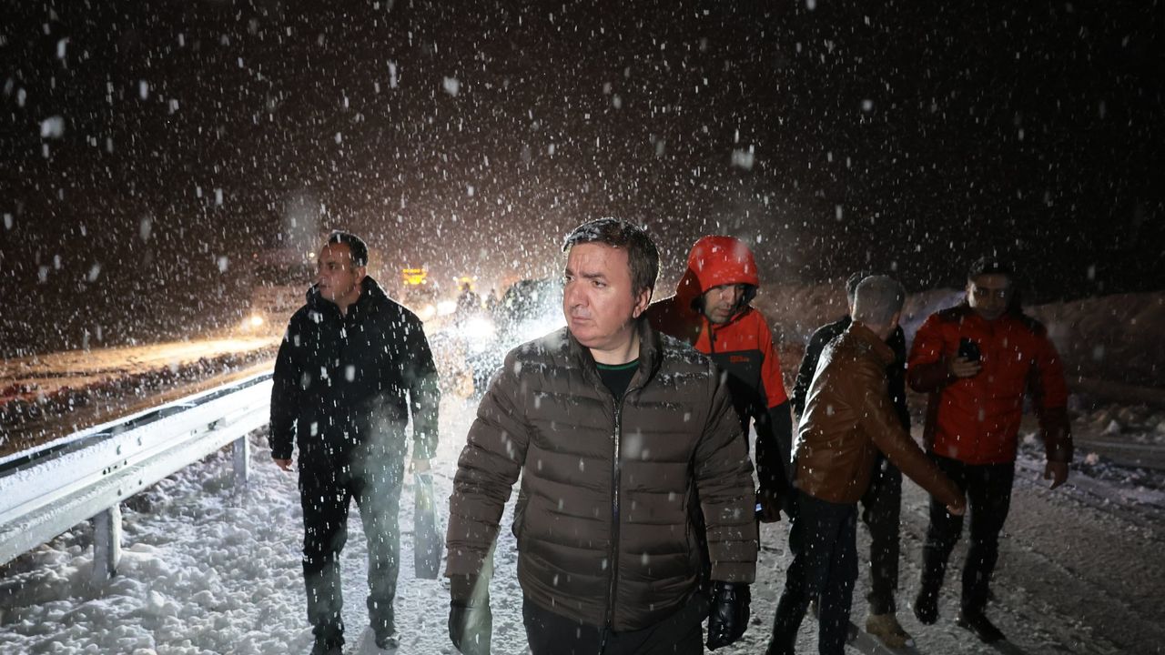 Erzincan Valisi Hamza Aydoğdu, zorlaşan hava ve yol koşulları üzerine bölgeye giderek çalışmaları yerinde inceledi. Karayolları ve ilgili tüm ekiplerin sahadaki faaliyetlerini kontrol eden Vali Aydoğdu, yolda kalan veya ilerlemekte güçlük çeken sürücülerle de görüşerek durum değerlendirmesi yaptı.